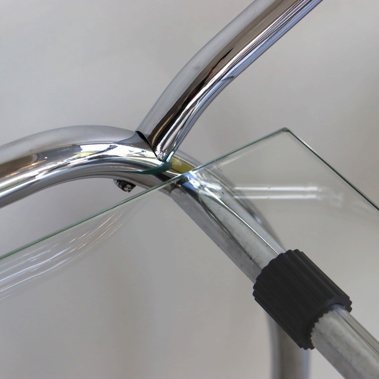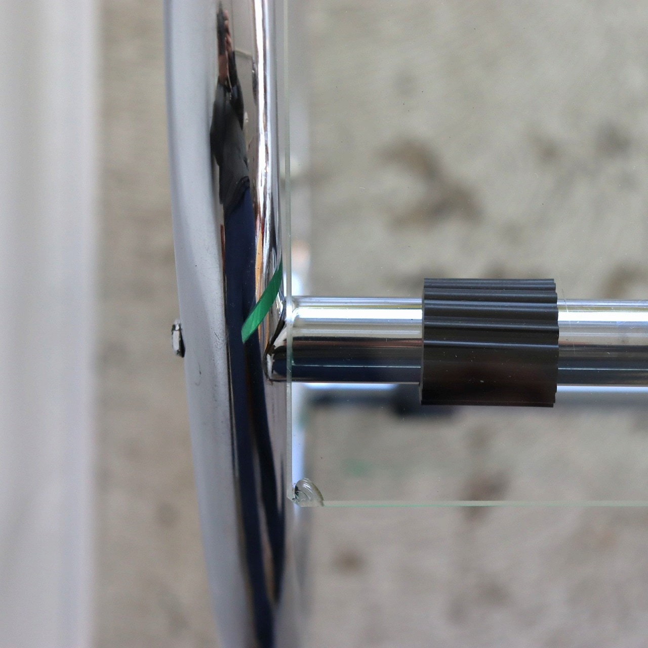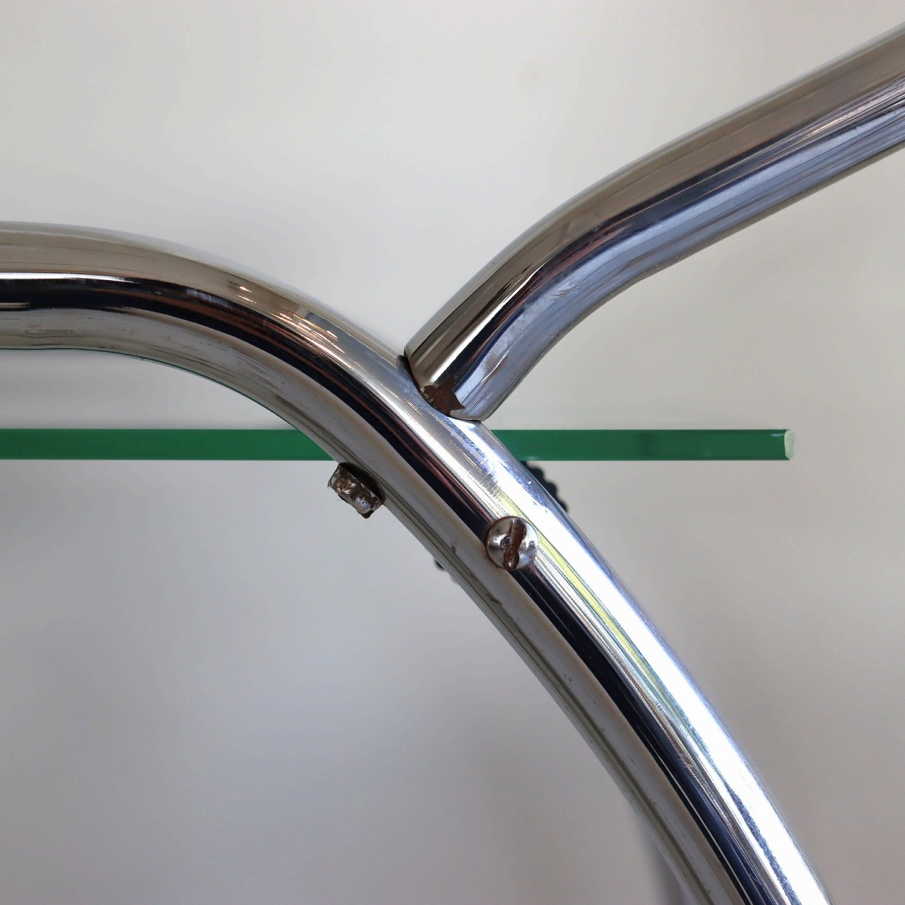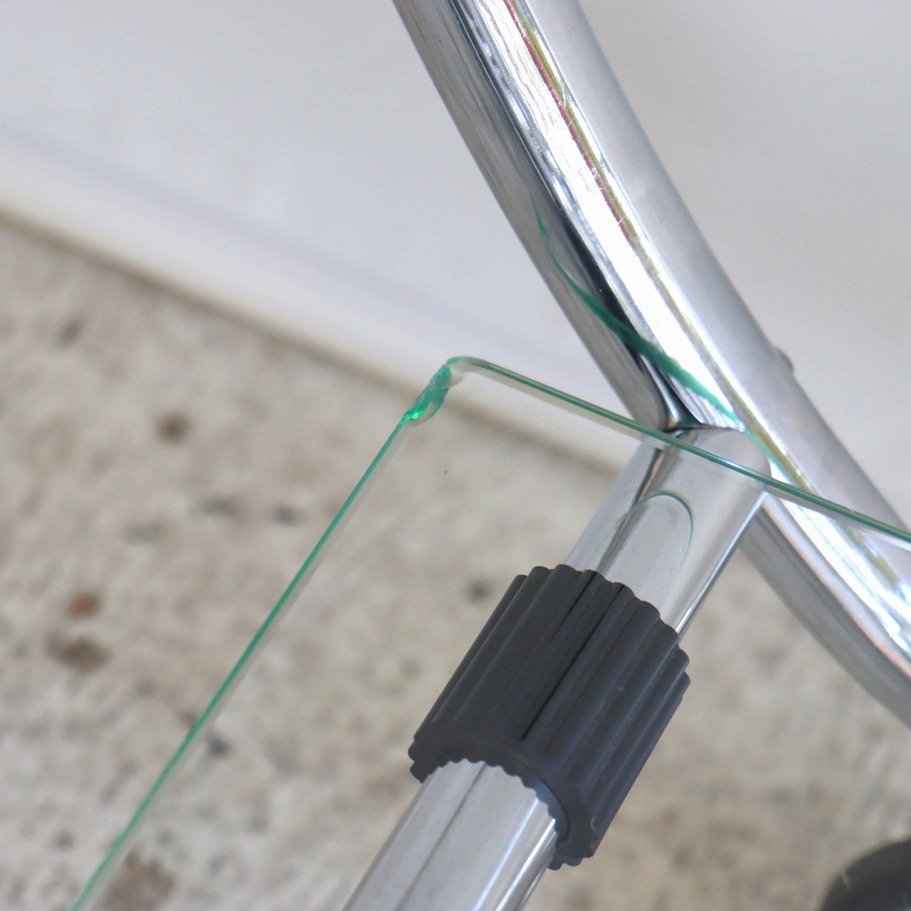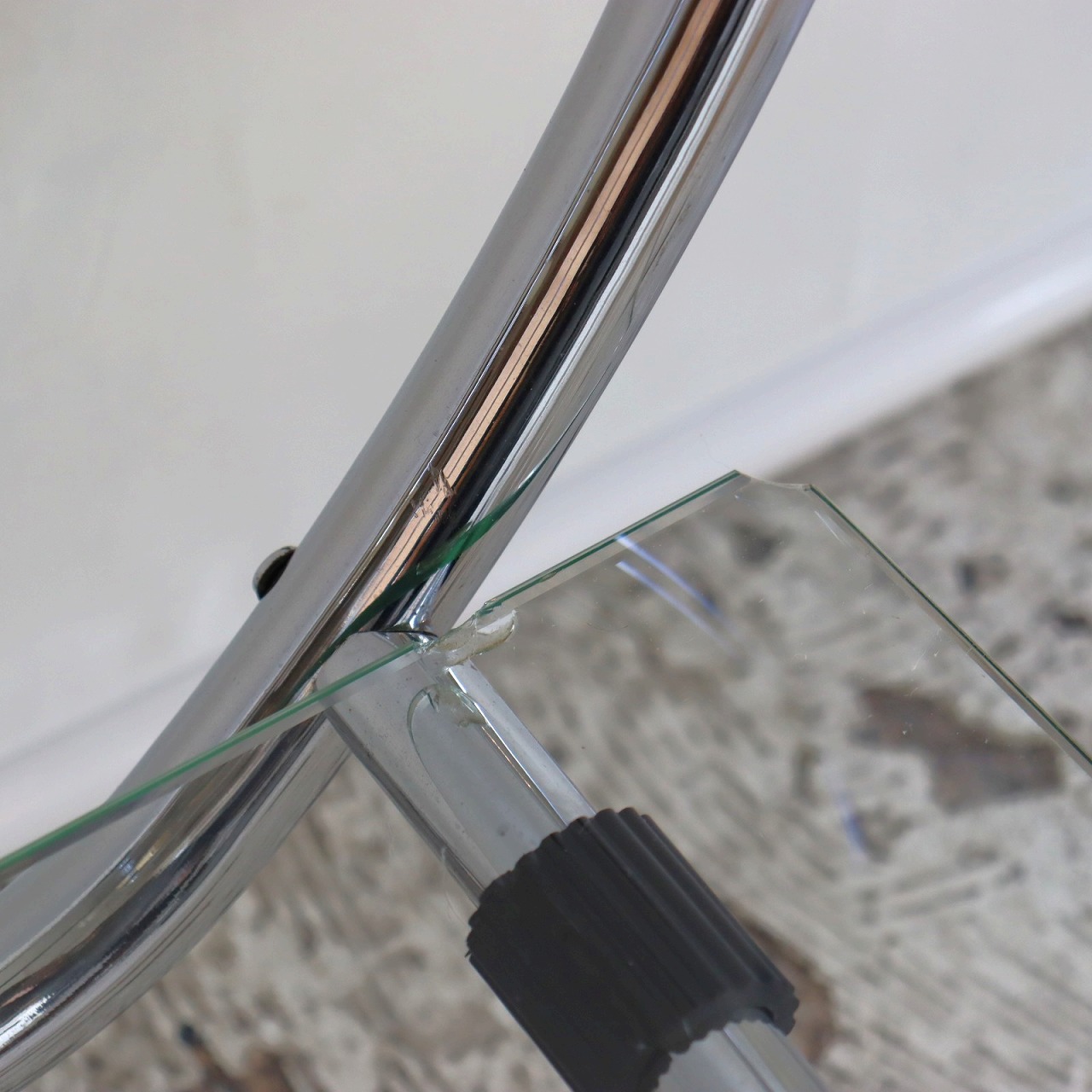 ガラスの端にいくつか欠けがありますが、大きく目立つようなダメージはありません。キャスターの動きは問題なくスムーズです。