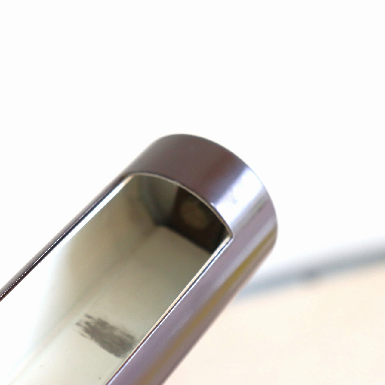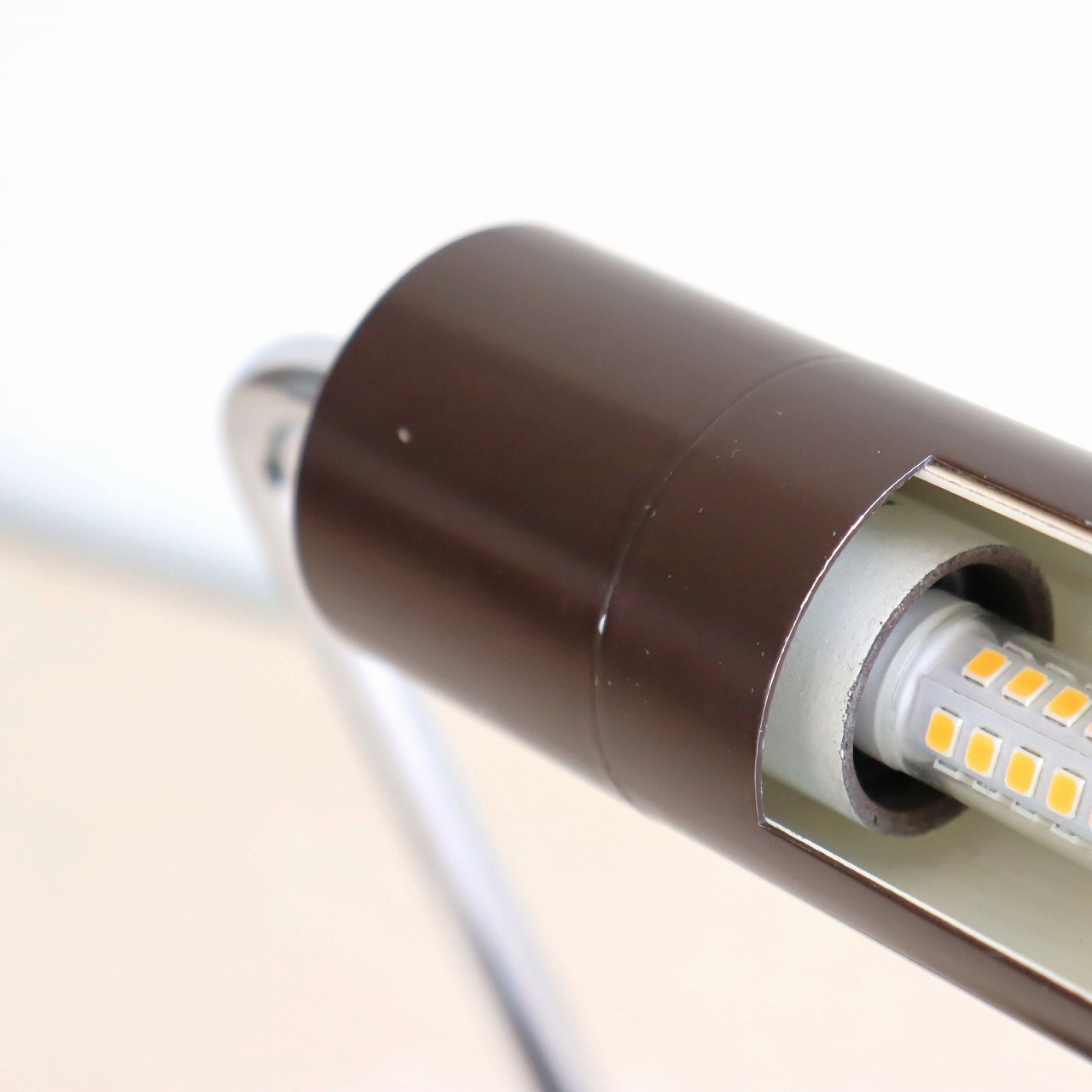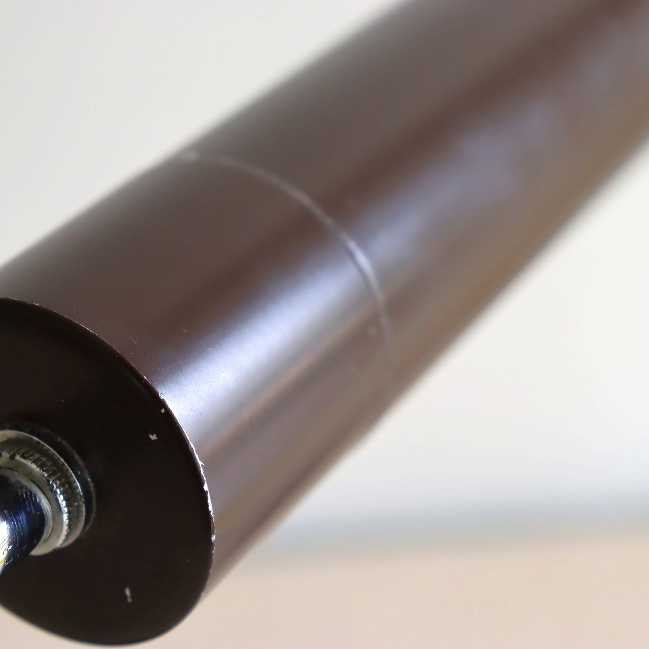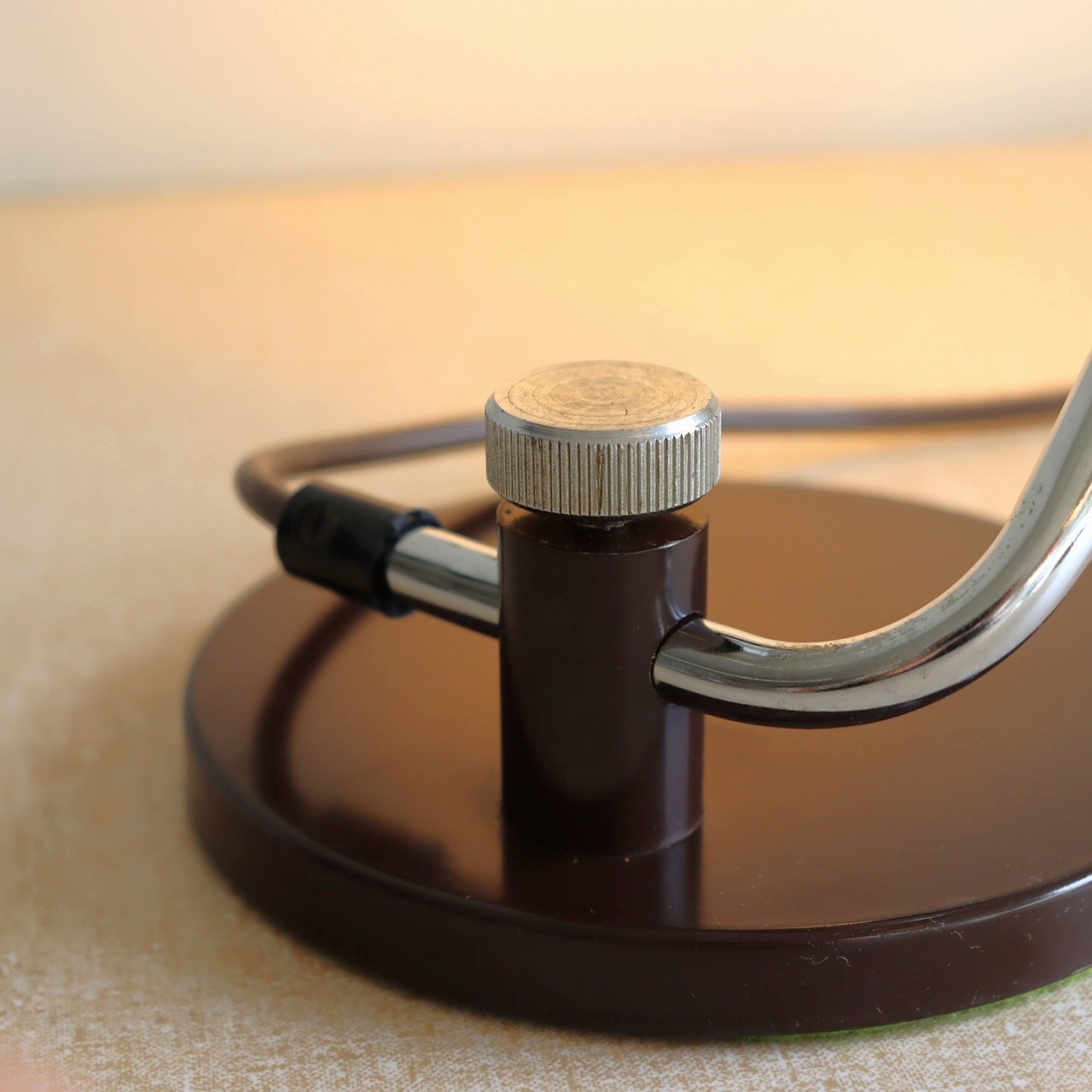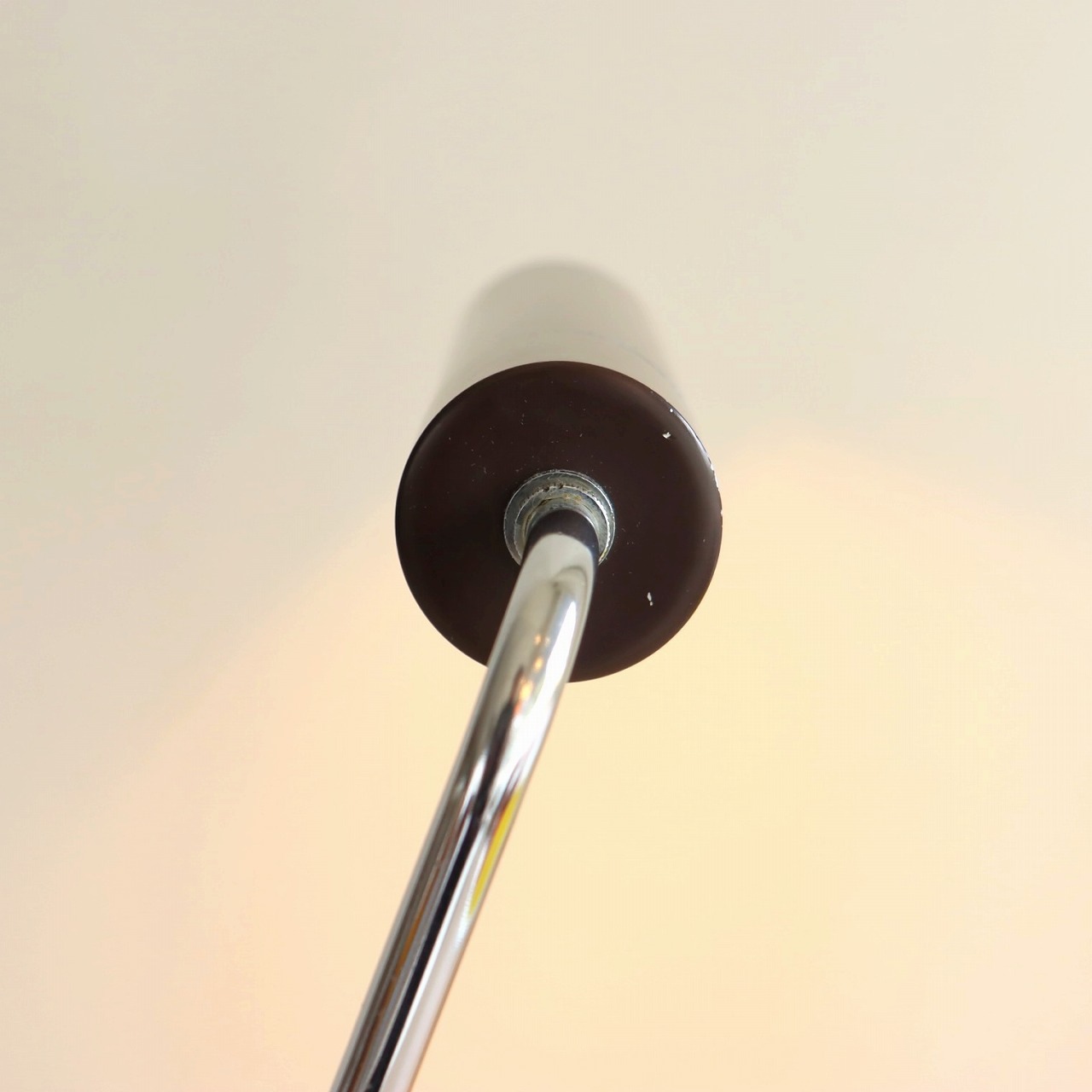 楕円のベース、クロームメッキのアームと筒状のシェードの組み合わせ。少し小ぶりの使いやすいサイズ感です。