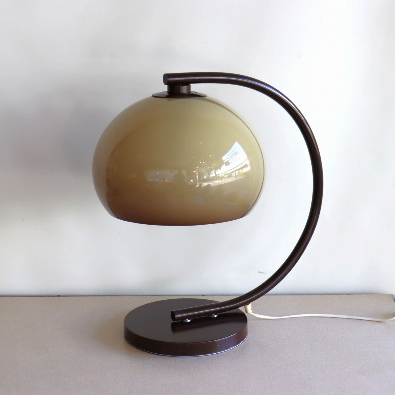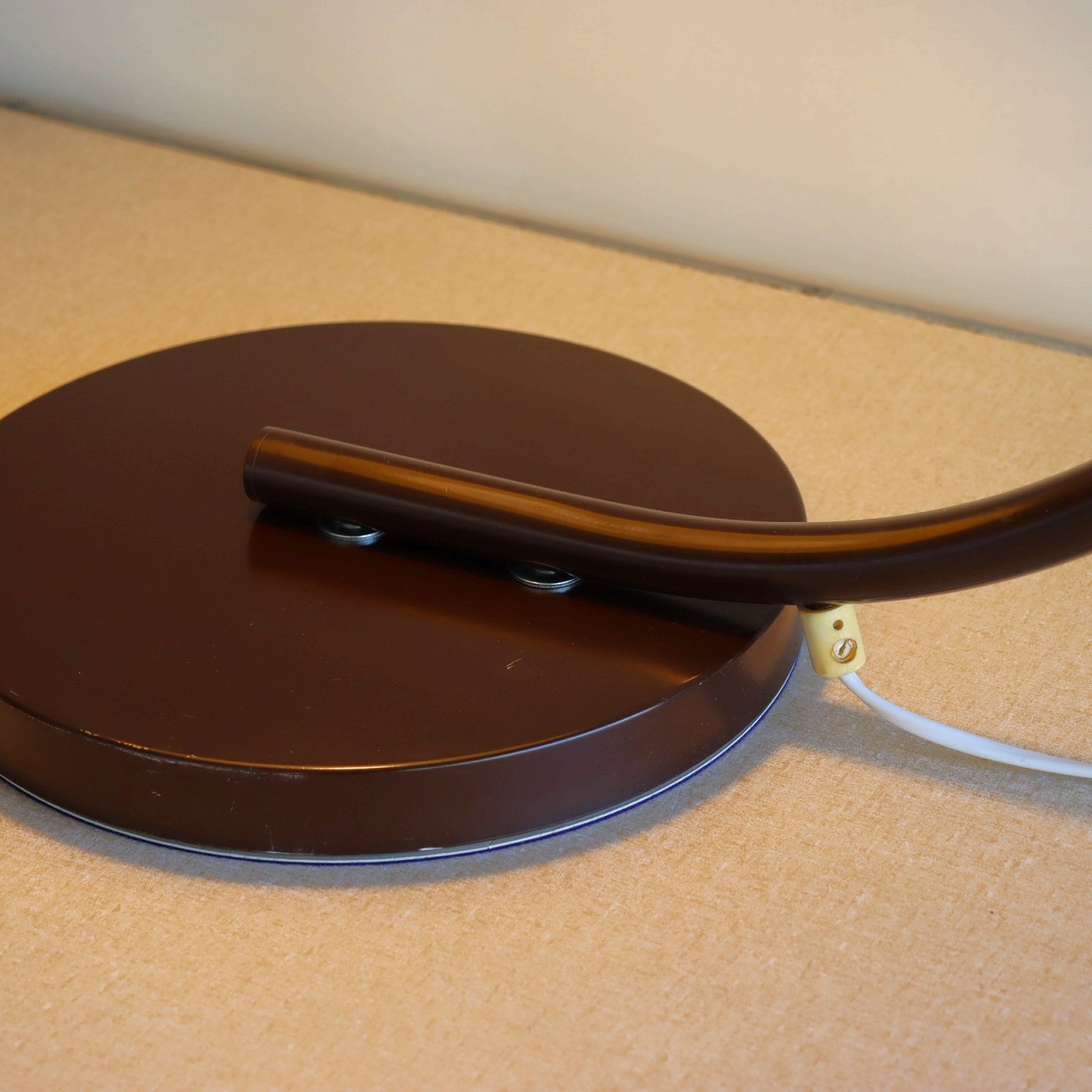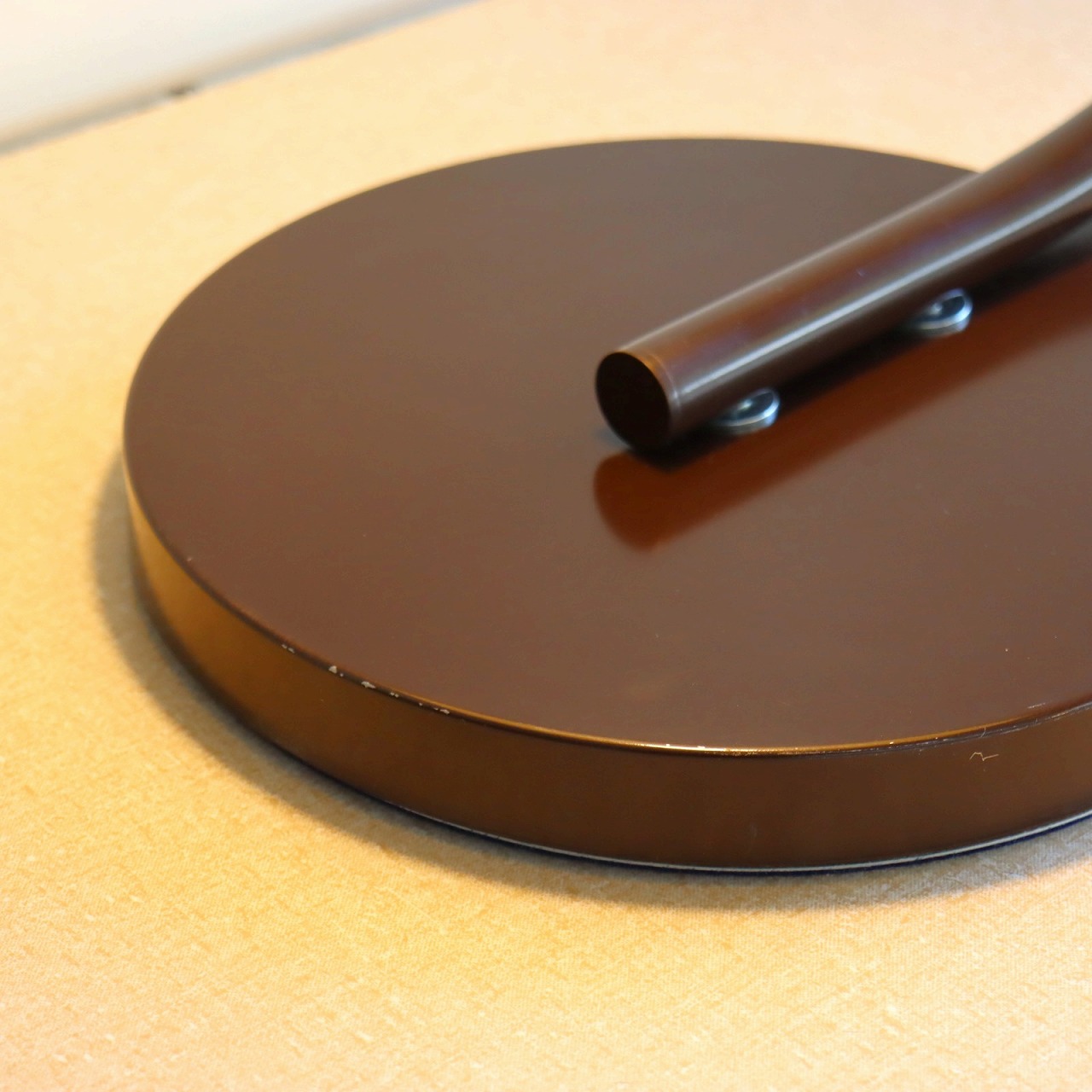 円盤型のベースとシェードを?壓ぐアームはしなるような曲線が美しいシルエットです。艶のあるブラウンは上品で落ち着きがあります。