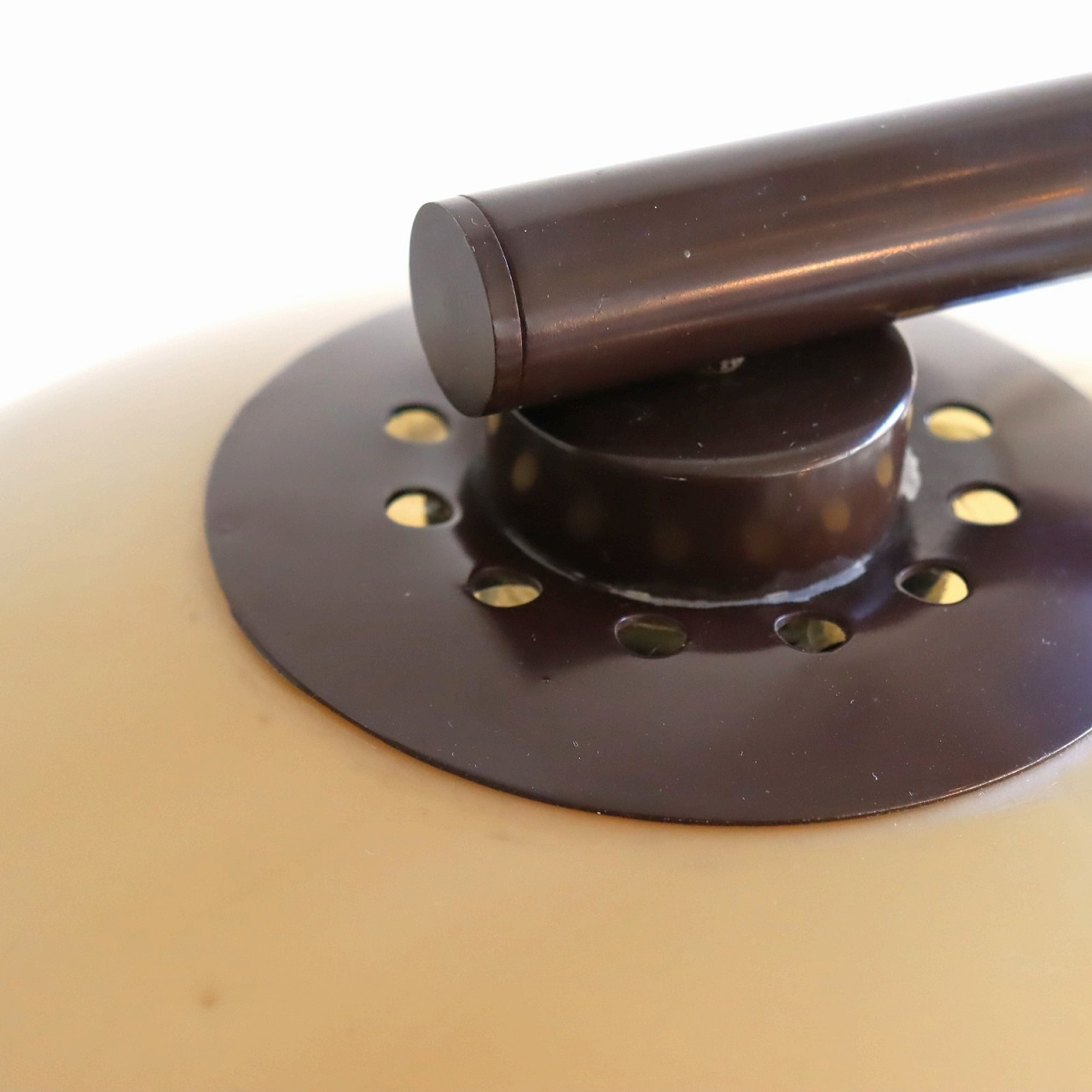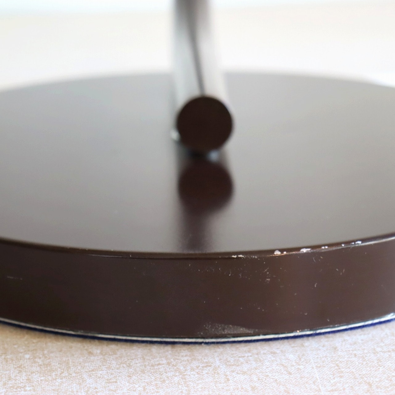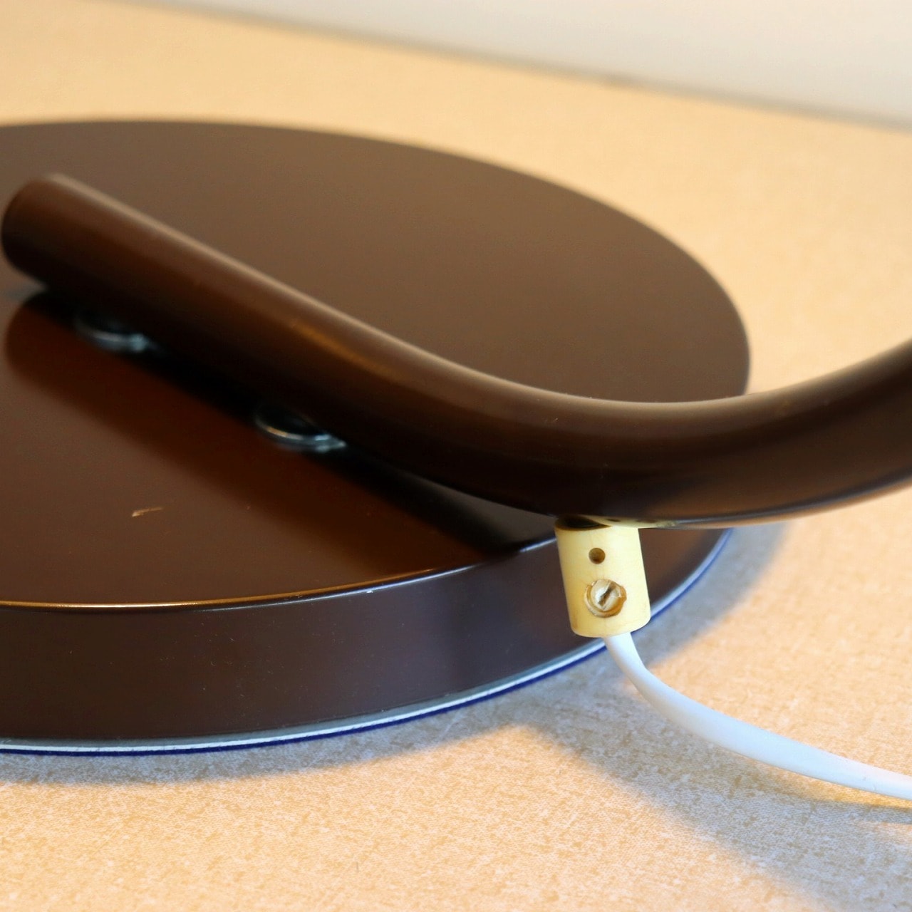 円盤型のベースとシェードを?壓ぐアームはしなるような曲線が美しいシルエットです。艶のあるブラウンは上品で落ち着きがあります。