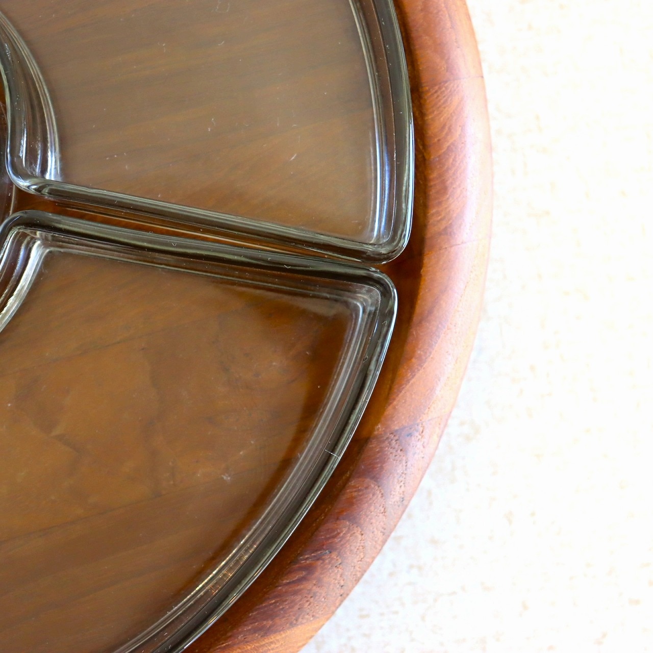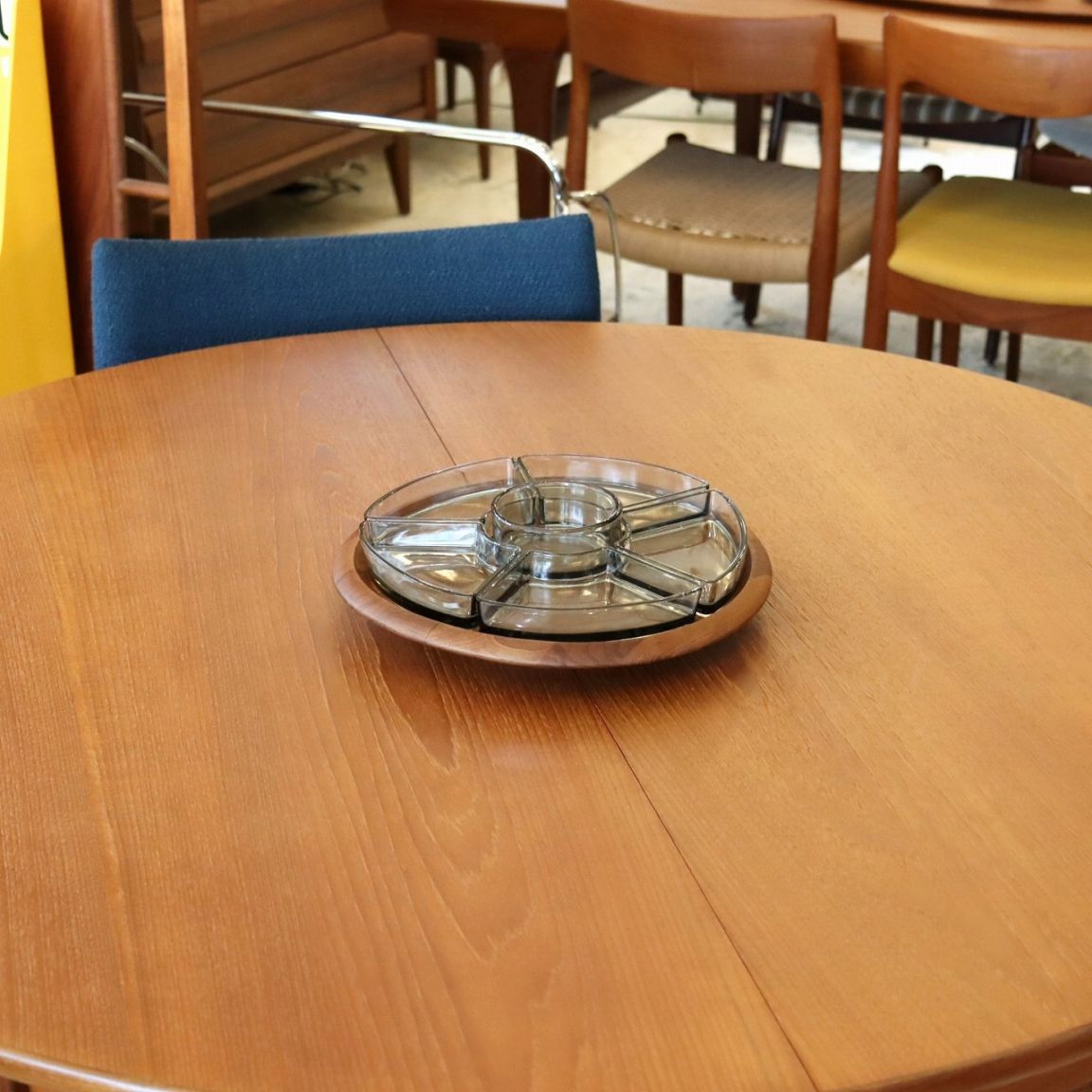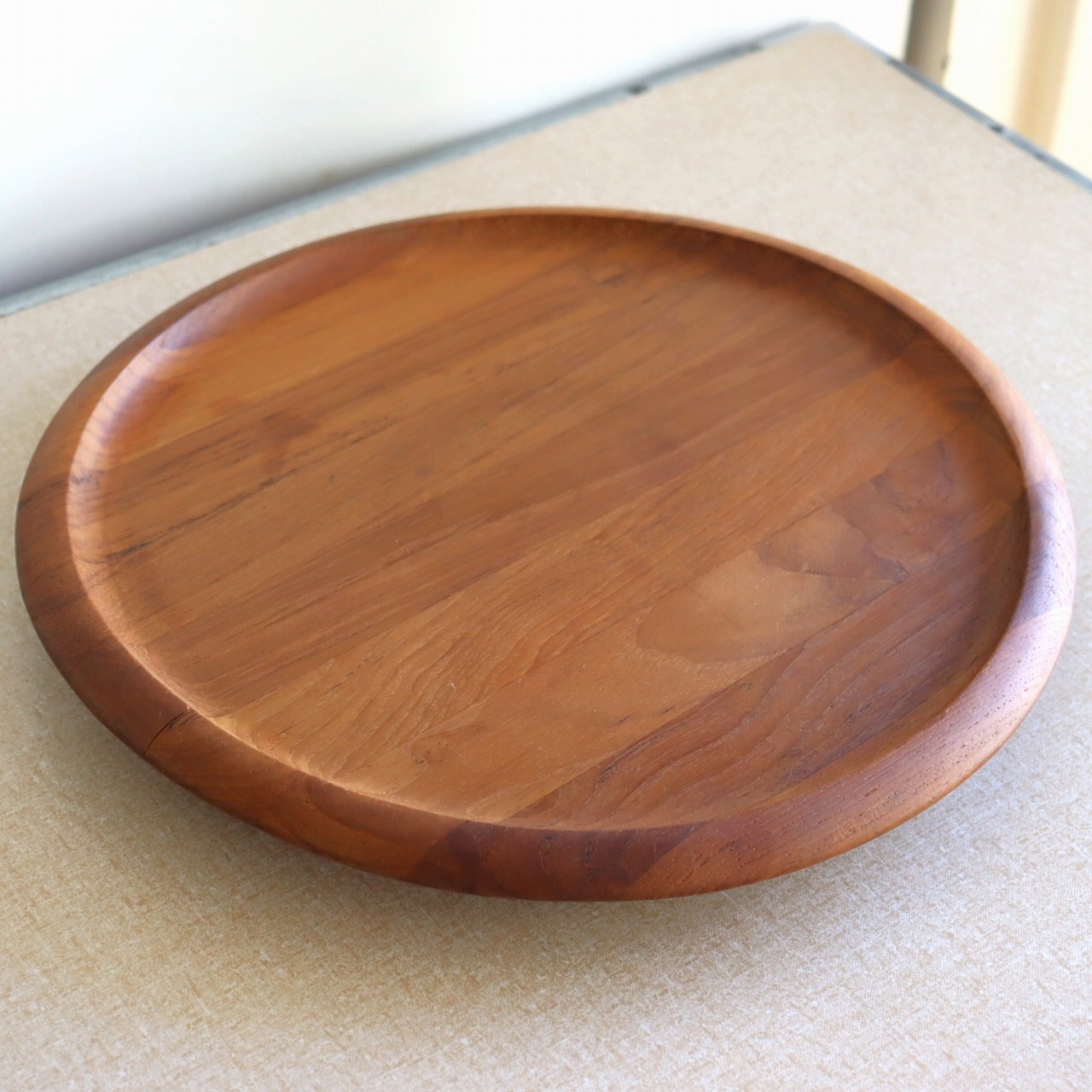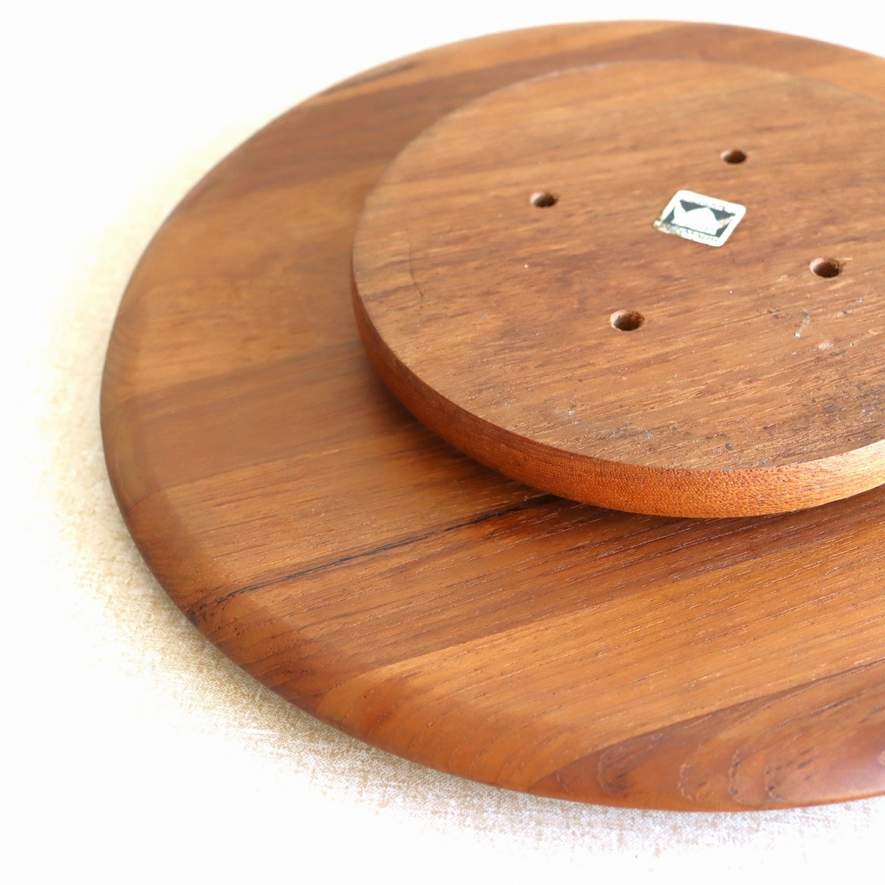 チーク材でできたウッドトレーは回転式で回すことが出来ます。無垢のトレーはチーク材の柔らかな雰囲気を存分に味わえます。内に入った台座はトレーが浮いているようなすっきりとした佇まい。