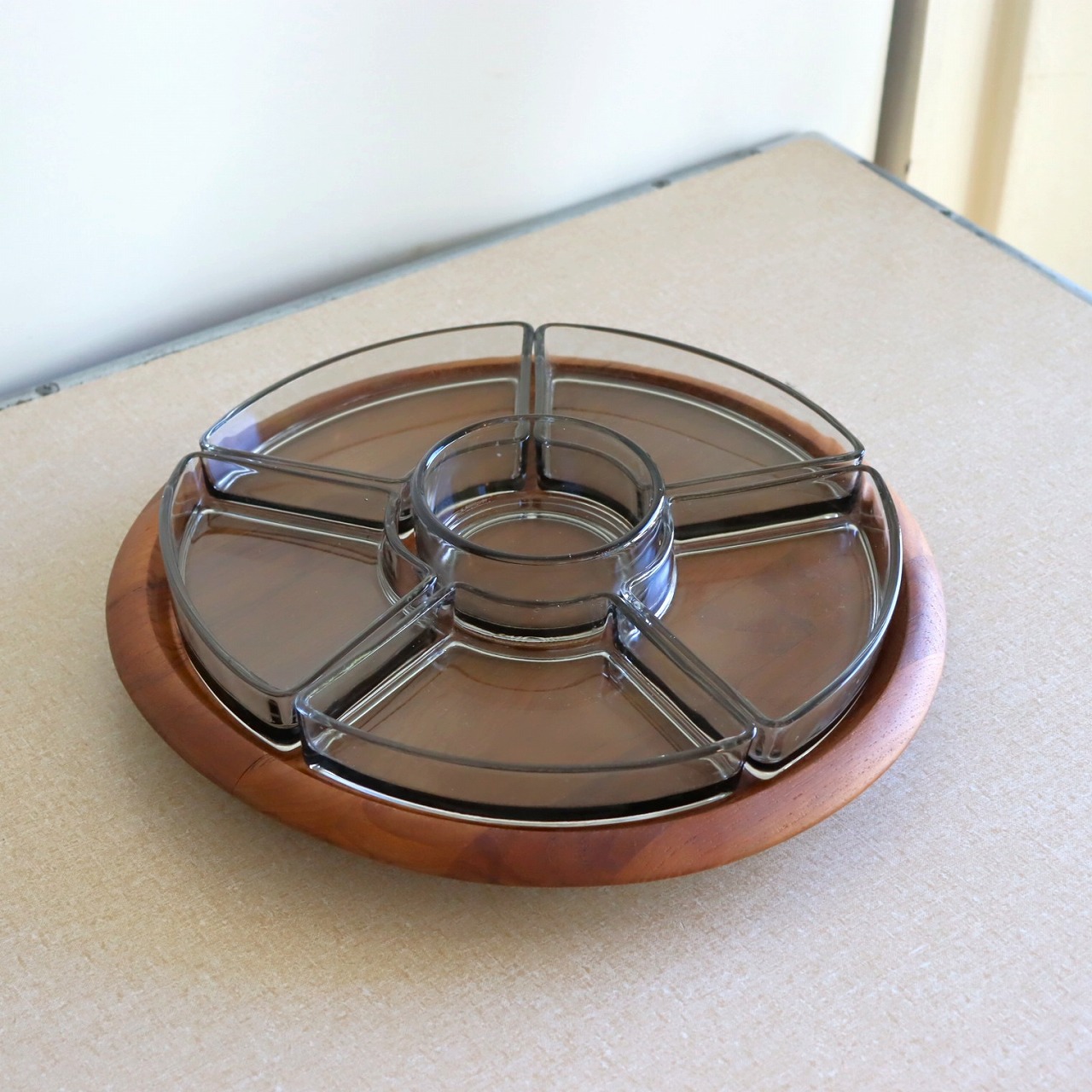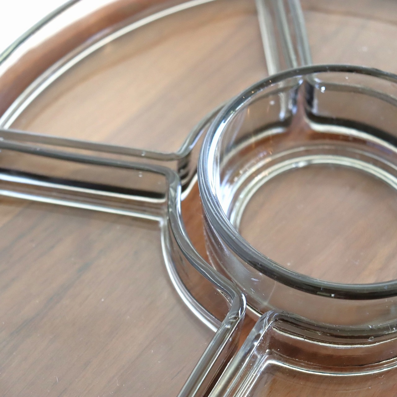 ディグスメッド社製ディップトレー。ウッドのテーブルにガラストレーが乗ったセット。