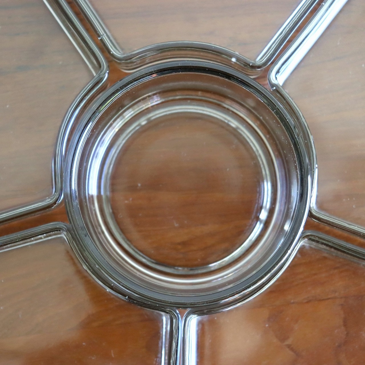 スモークガラスのサービングディッシュトレーは計6個。花びらのように放射状に広がったデザインで、それぞれ別々に使うことが出来ます。
