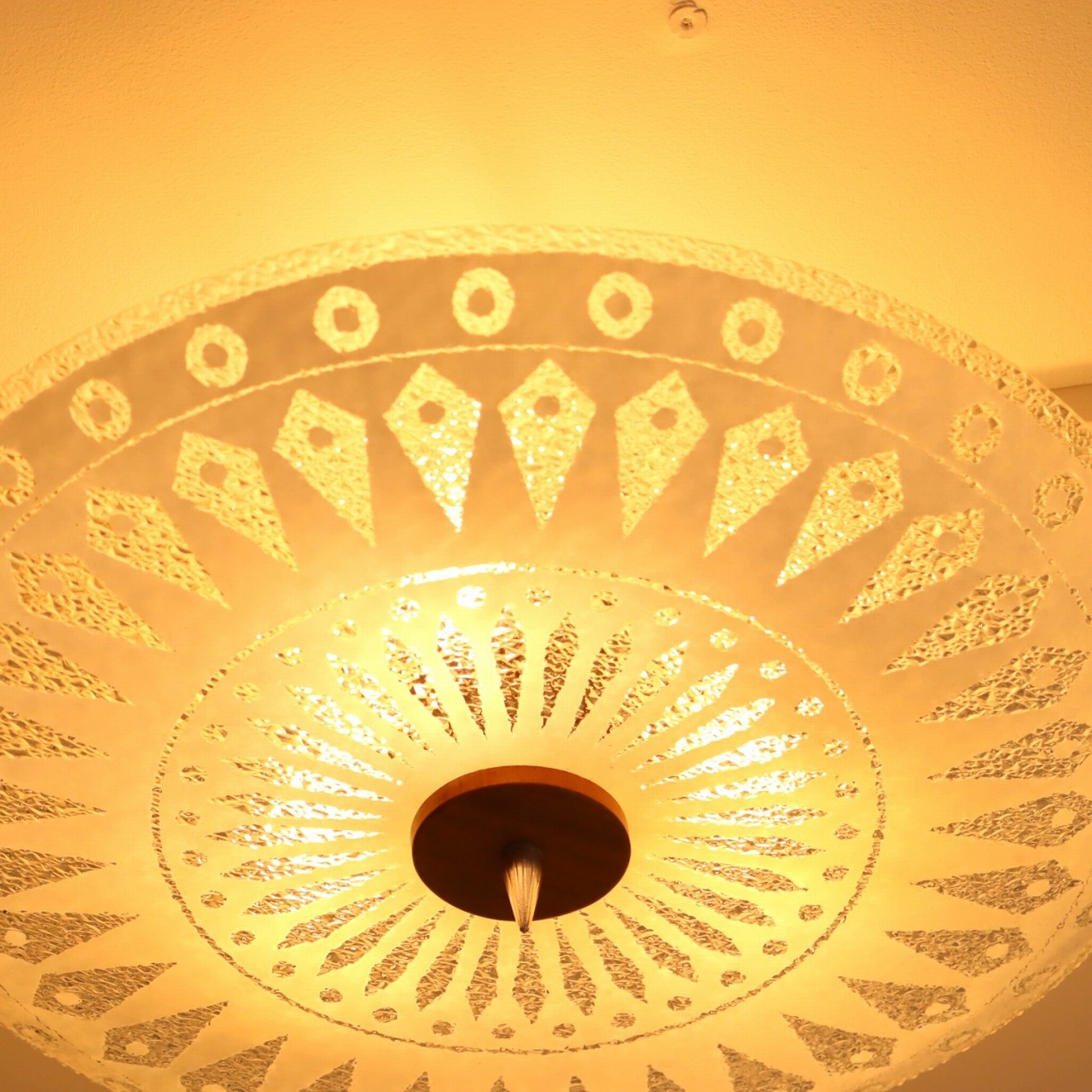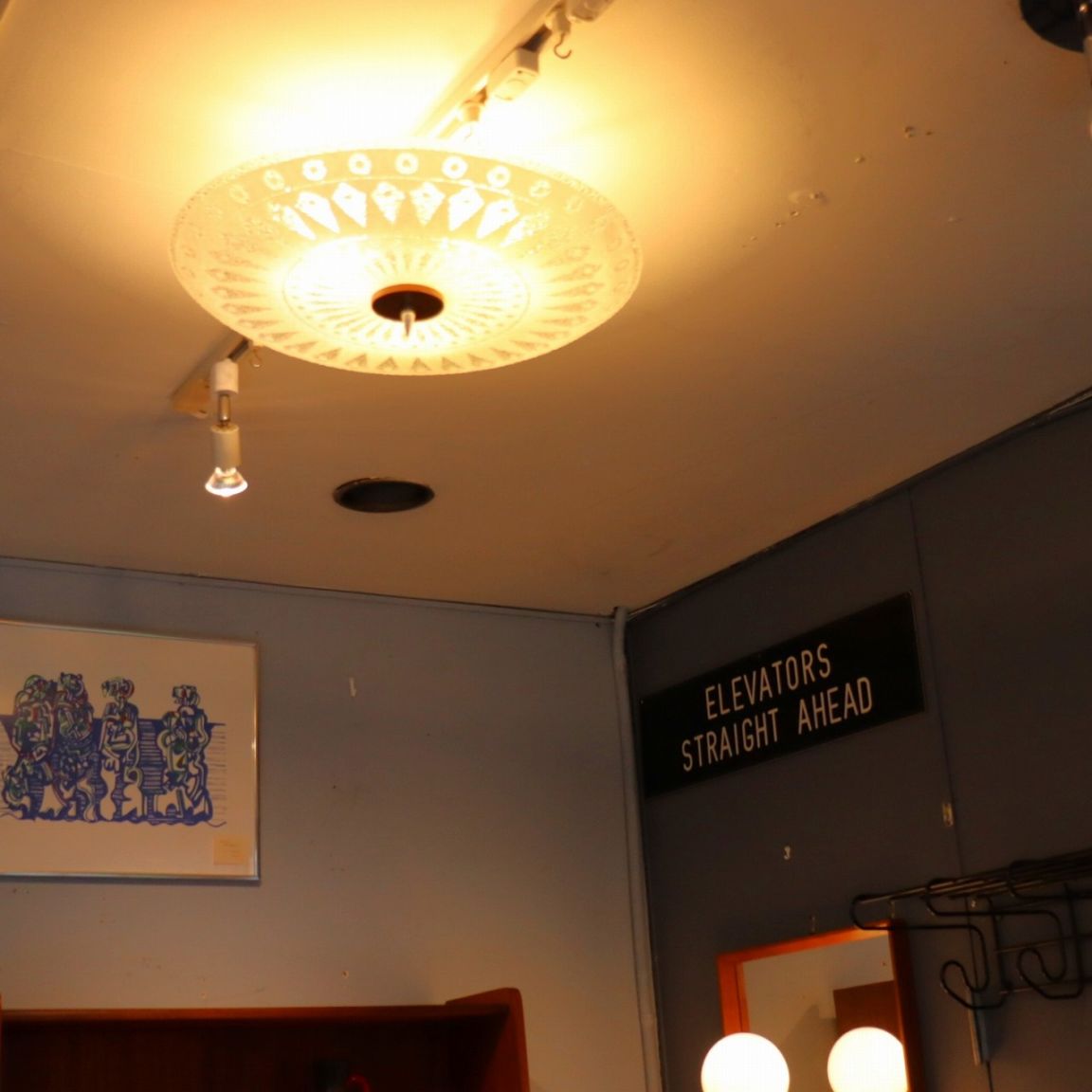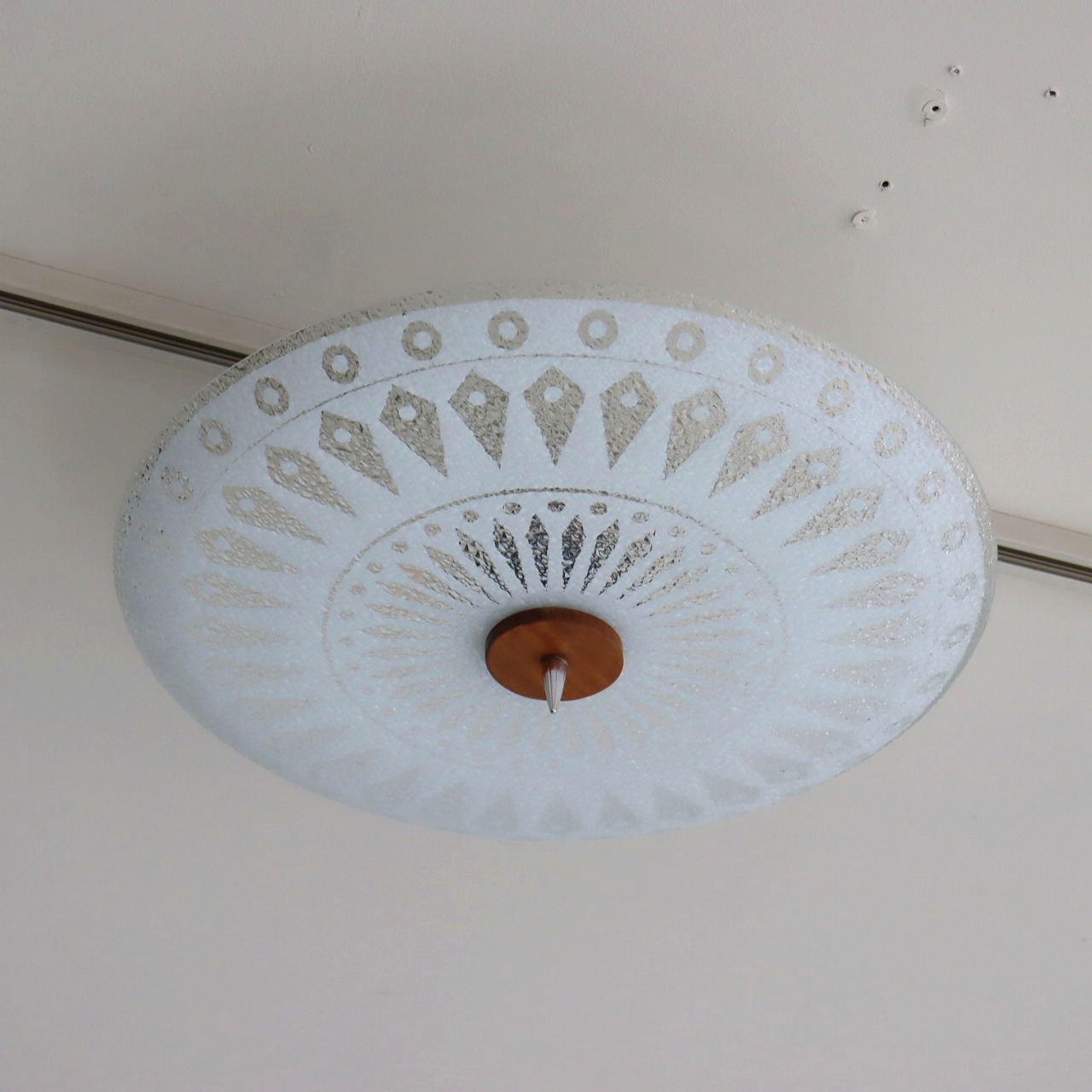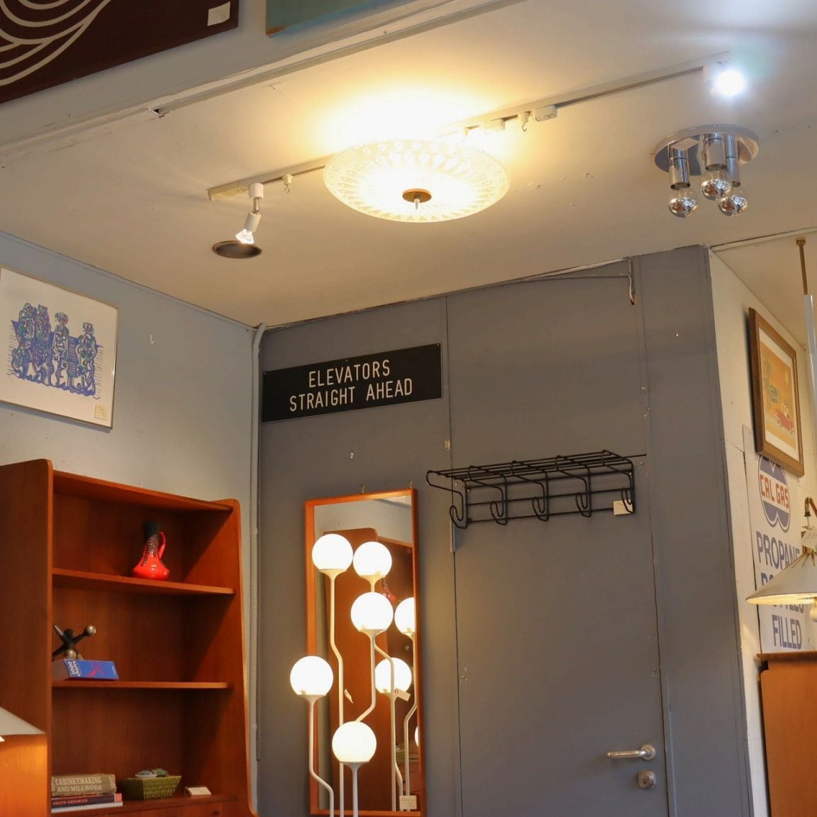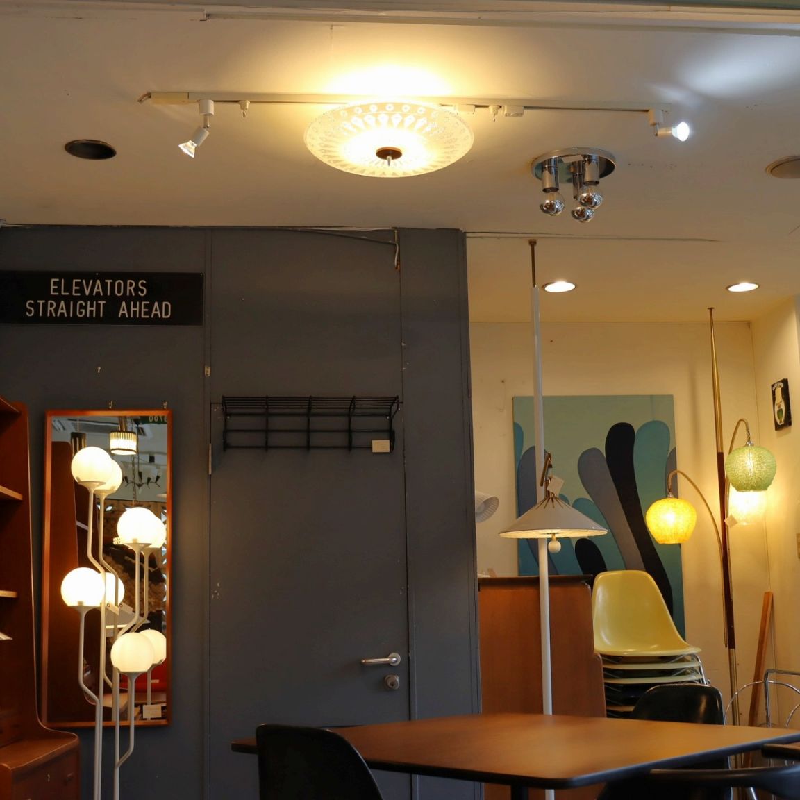 ガラスシーリングランプ。天井付けのランプでガラスシェードに映る灯りが魅力的なアイテムです。
