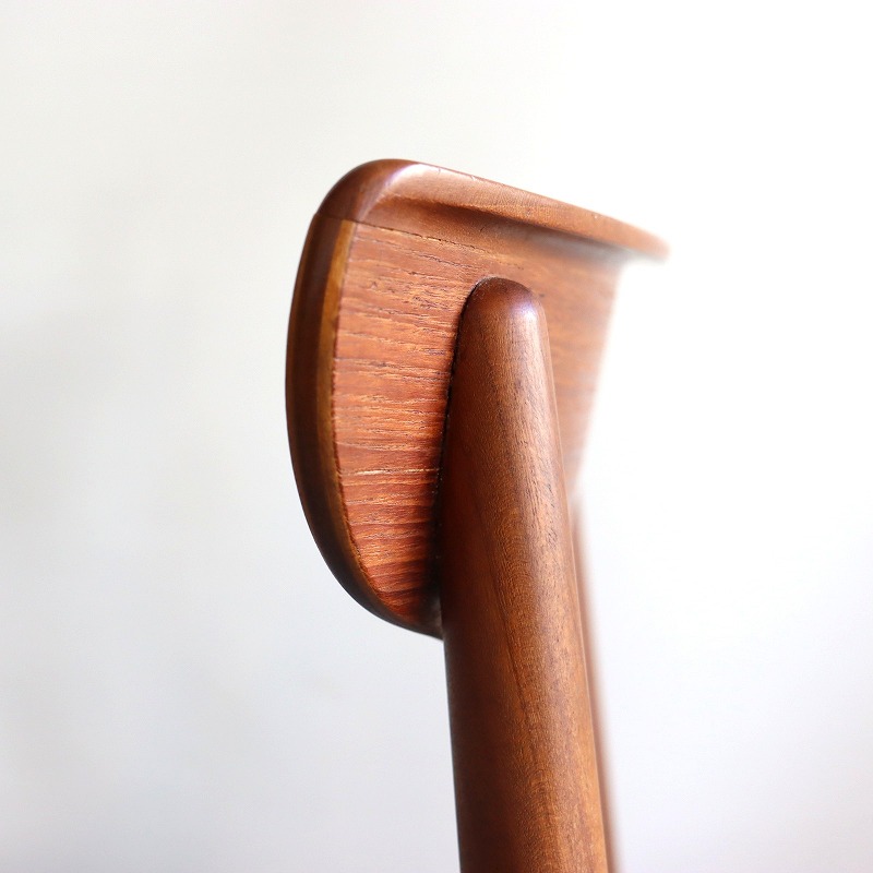 背面からの視線も気になるダイニングシーンでは後ろ姿の美しさも選ぶポイントのひとつとなりますね。チーク材のフレームが美しく、木の繋ぎ目は滑らかで有機的です。リズム感のあるデザインのフレームも素敵。
