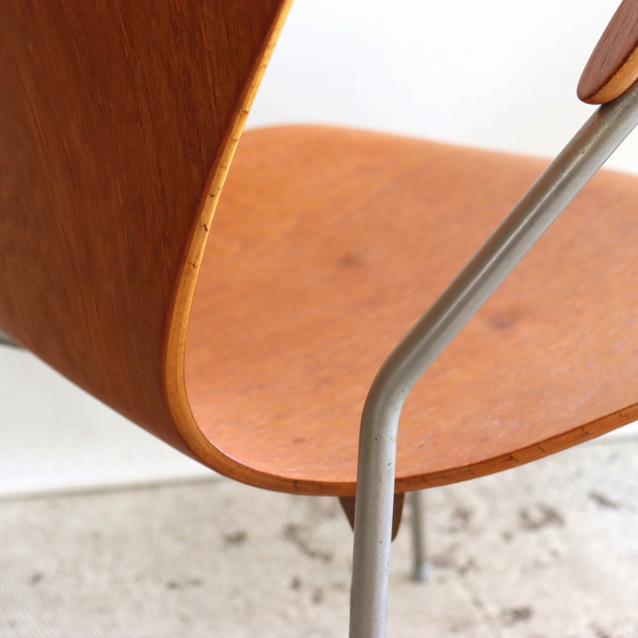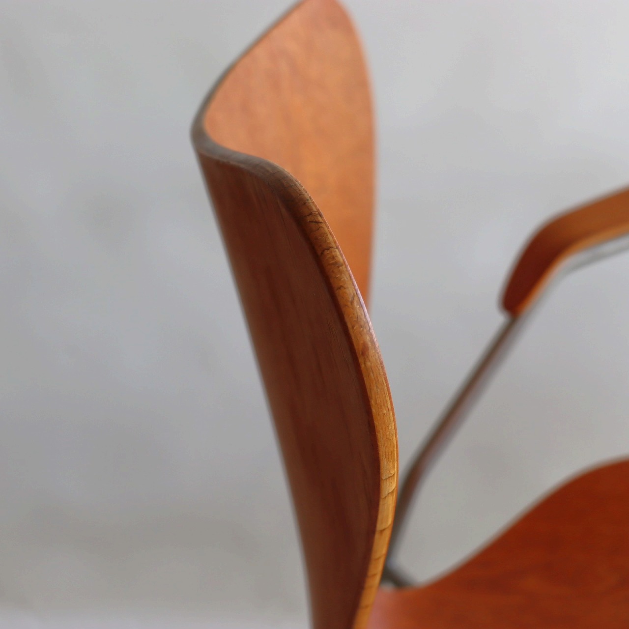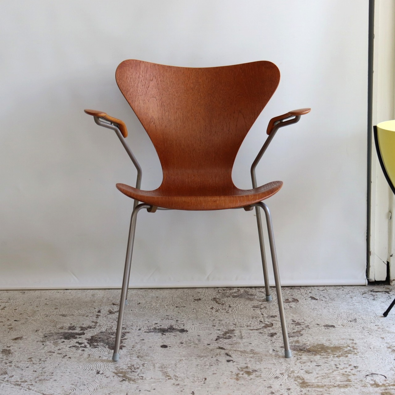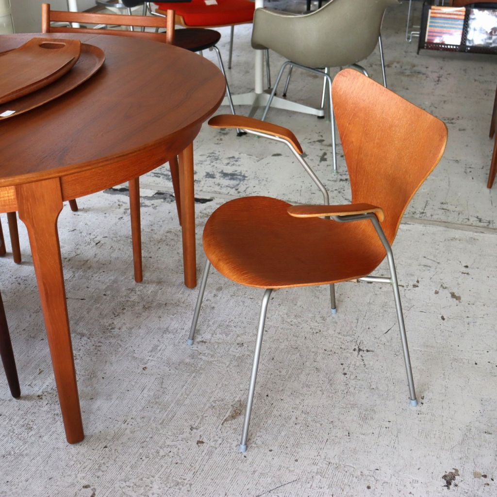 こちらはヴィンテージ、チーク材のセブンチェア。アームレストが付いた「3207」モデル。