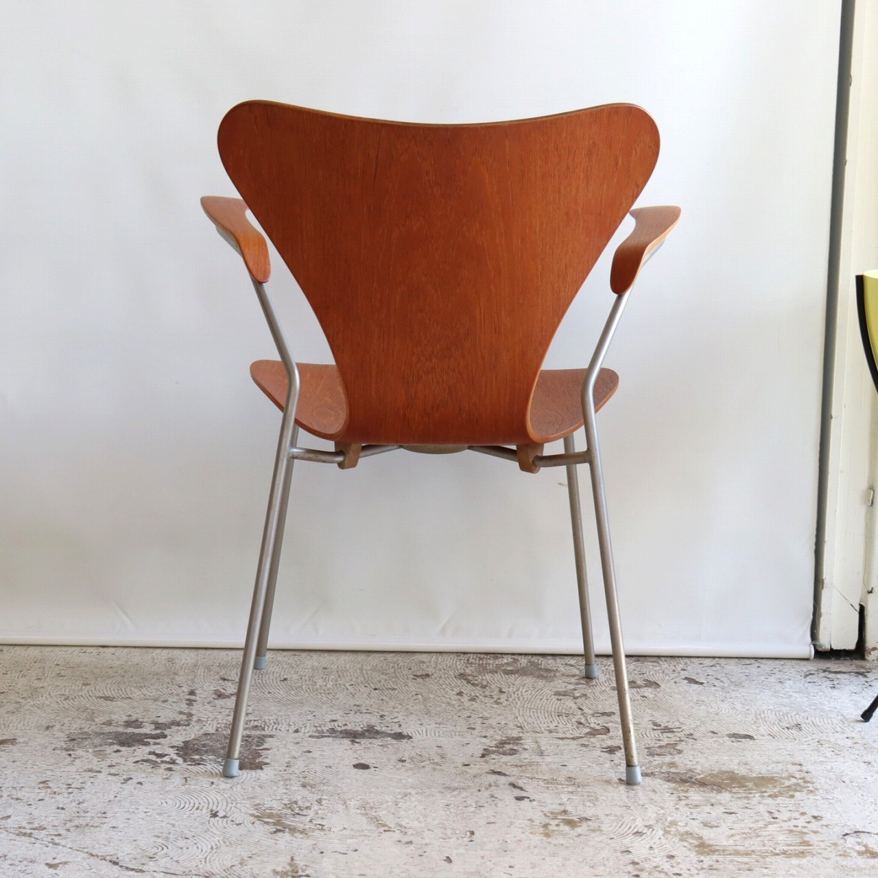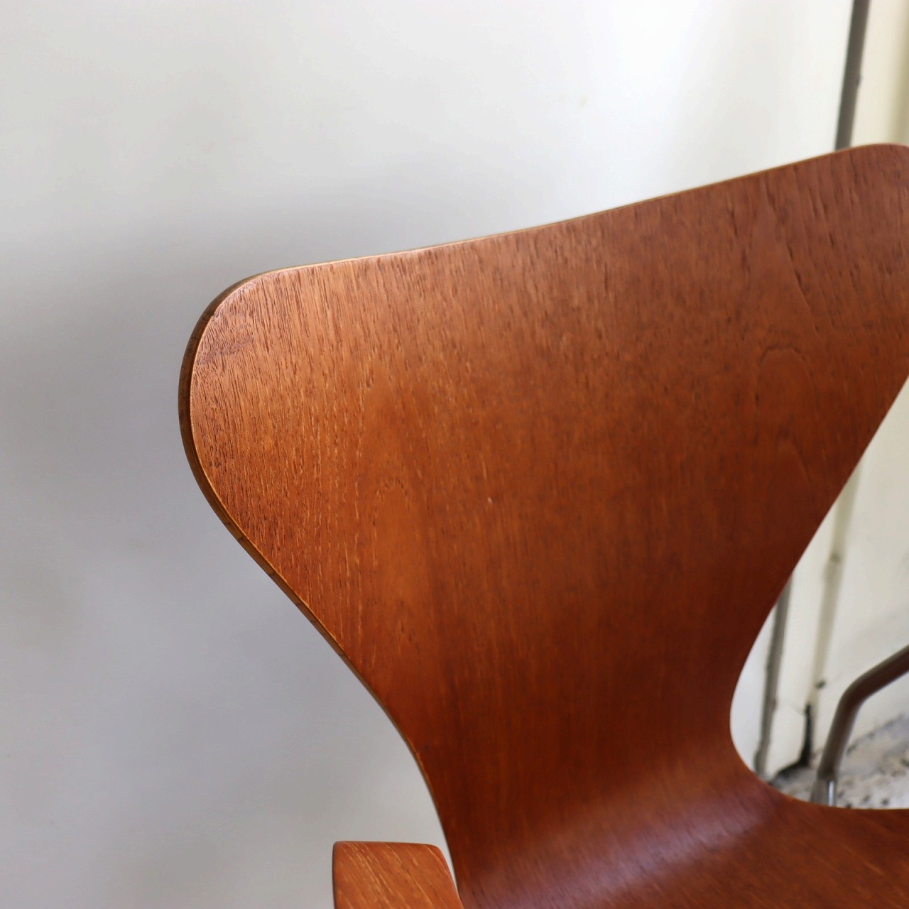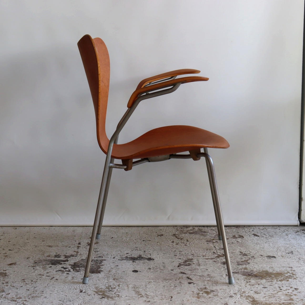 こちらはヴィンテージ、チーク材のセブンチェア。アームレストが付いた「3207」モデル。