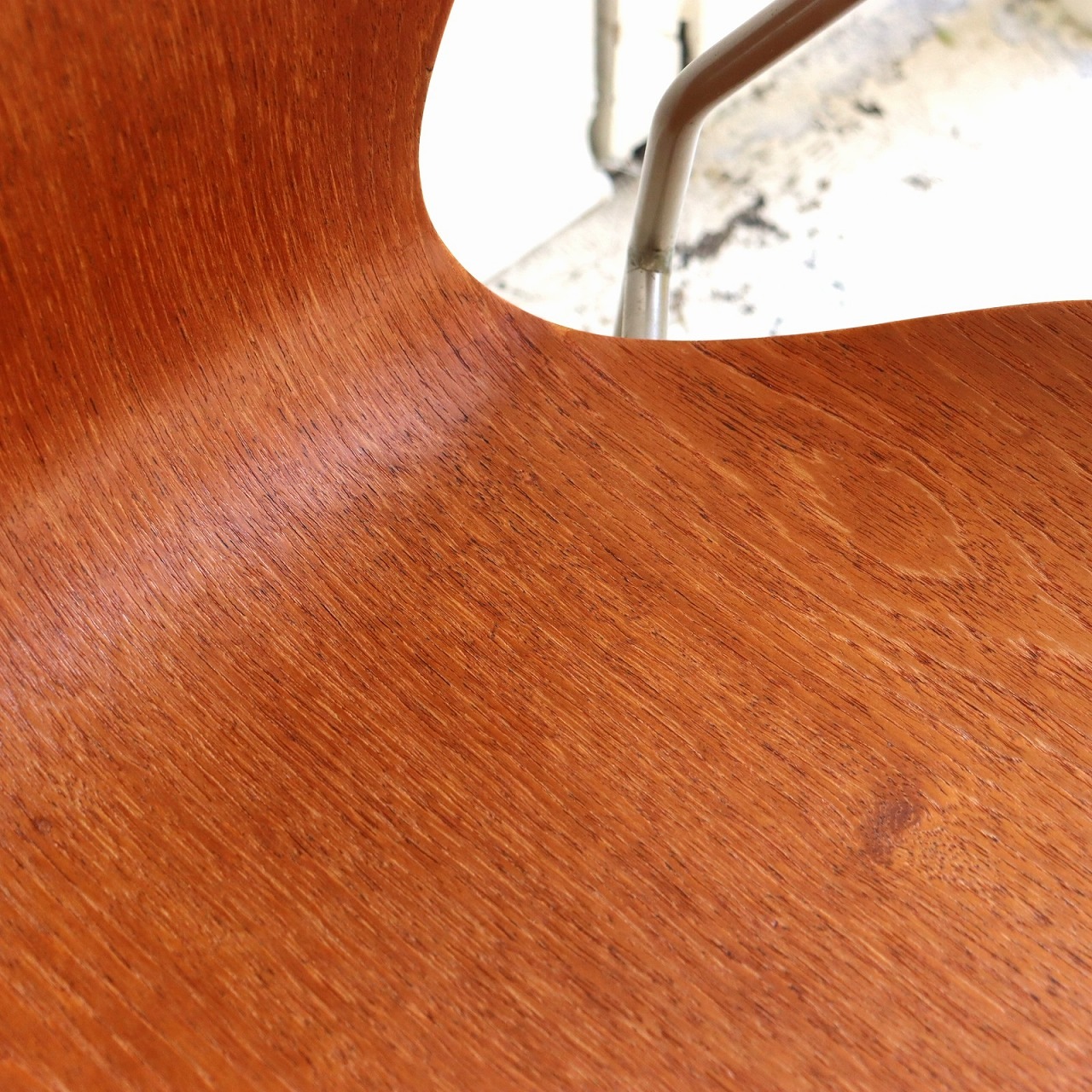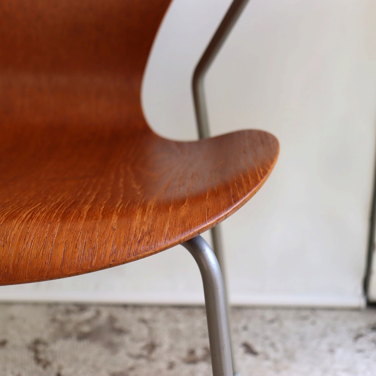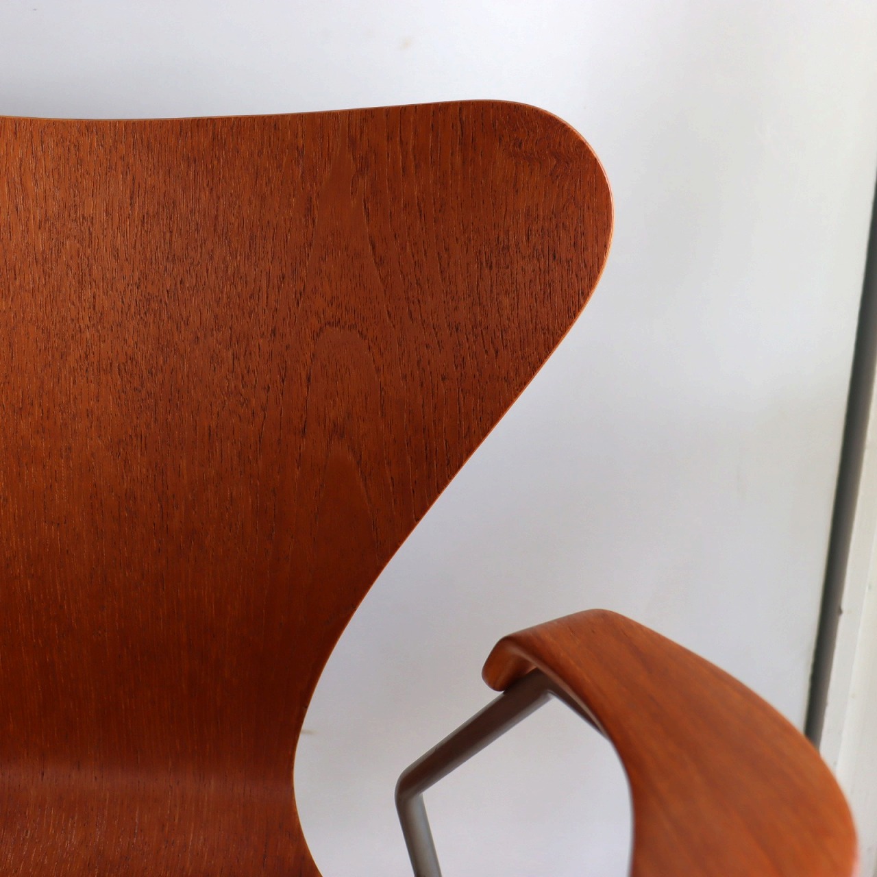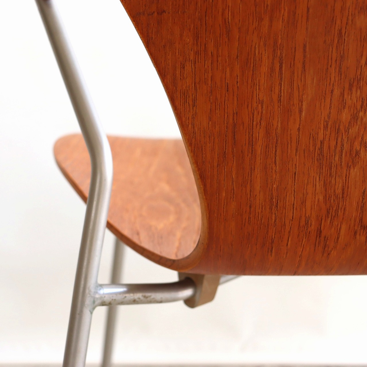 こちらはヴィンテージ、チーク材のセブンチェア。アームレストが付いた「3207」モデル。