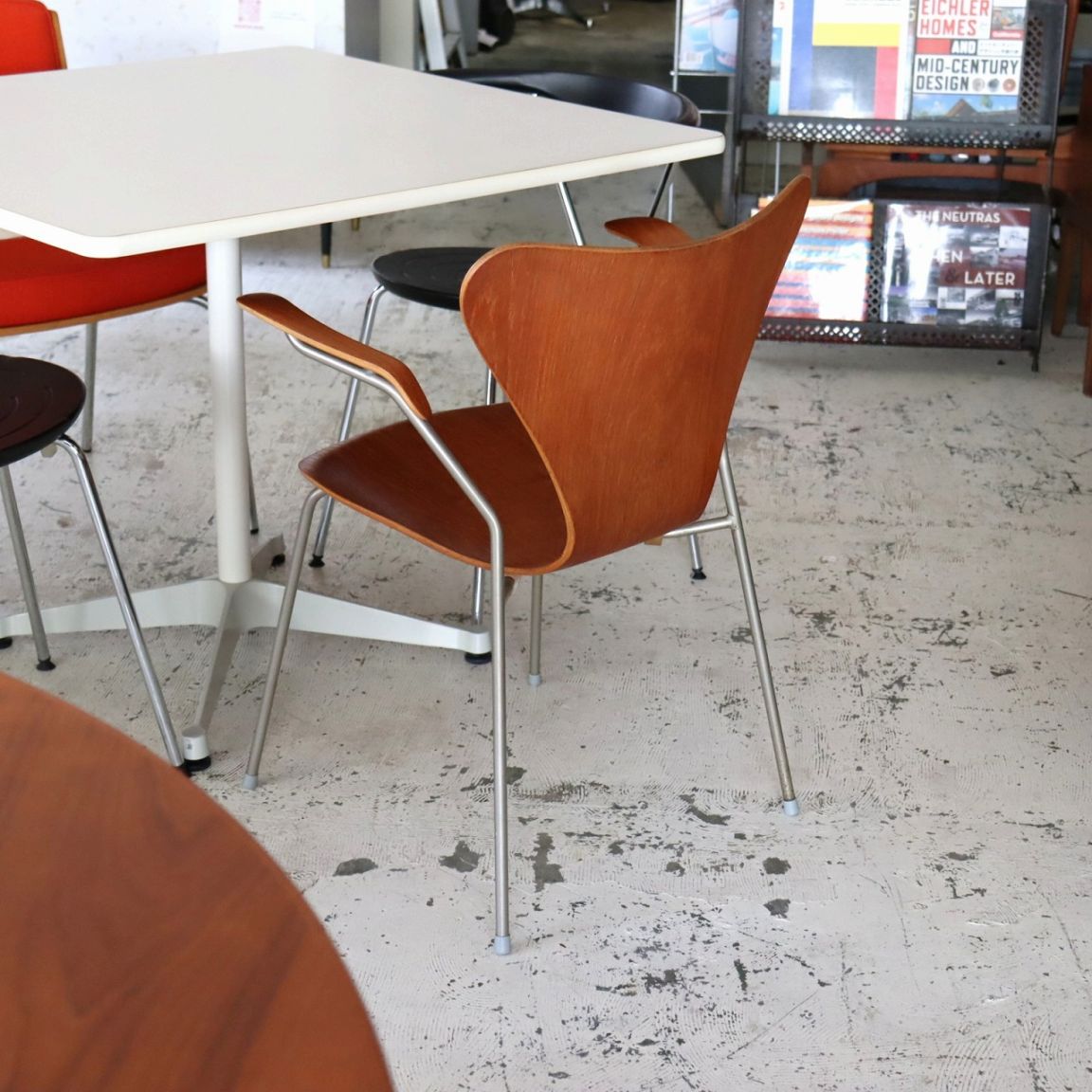 フリッツハンセン社製セブンチェア。デンマークの建築家でもあり名デザイナーのアルネ・ヤコブセンデザインが1955年にデザインしたチェアです。フリッツハンセン社を代表する名チェアであり家具の歴史におけるアイコン的な存在です。