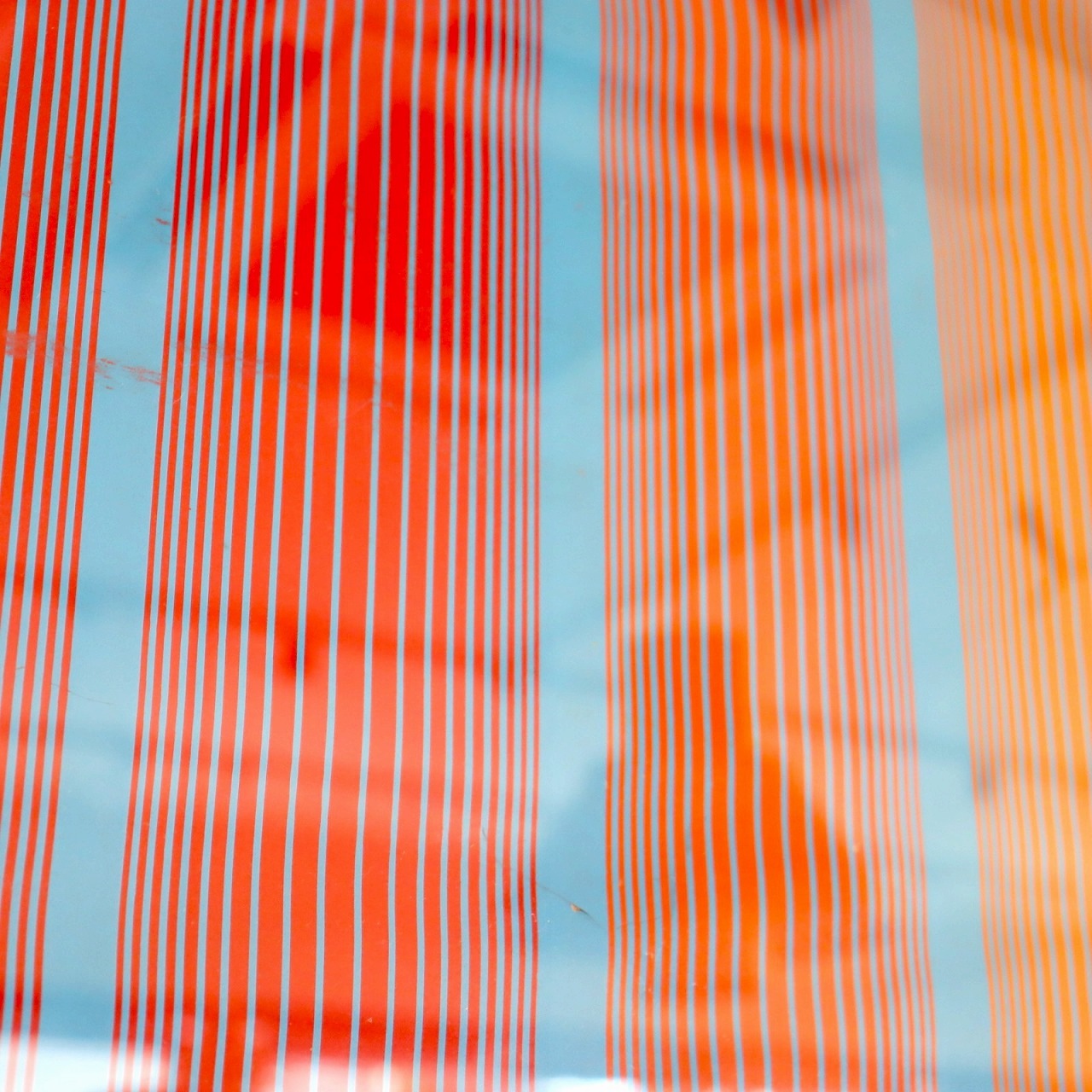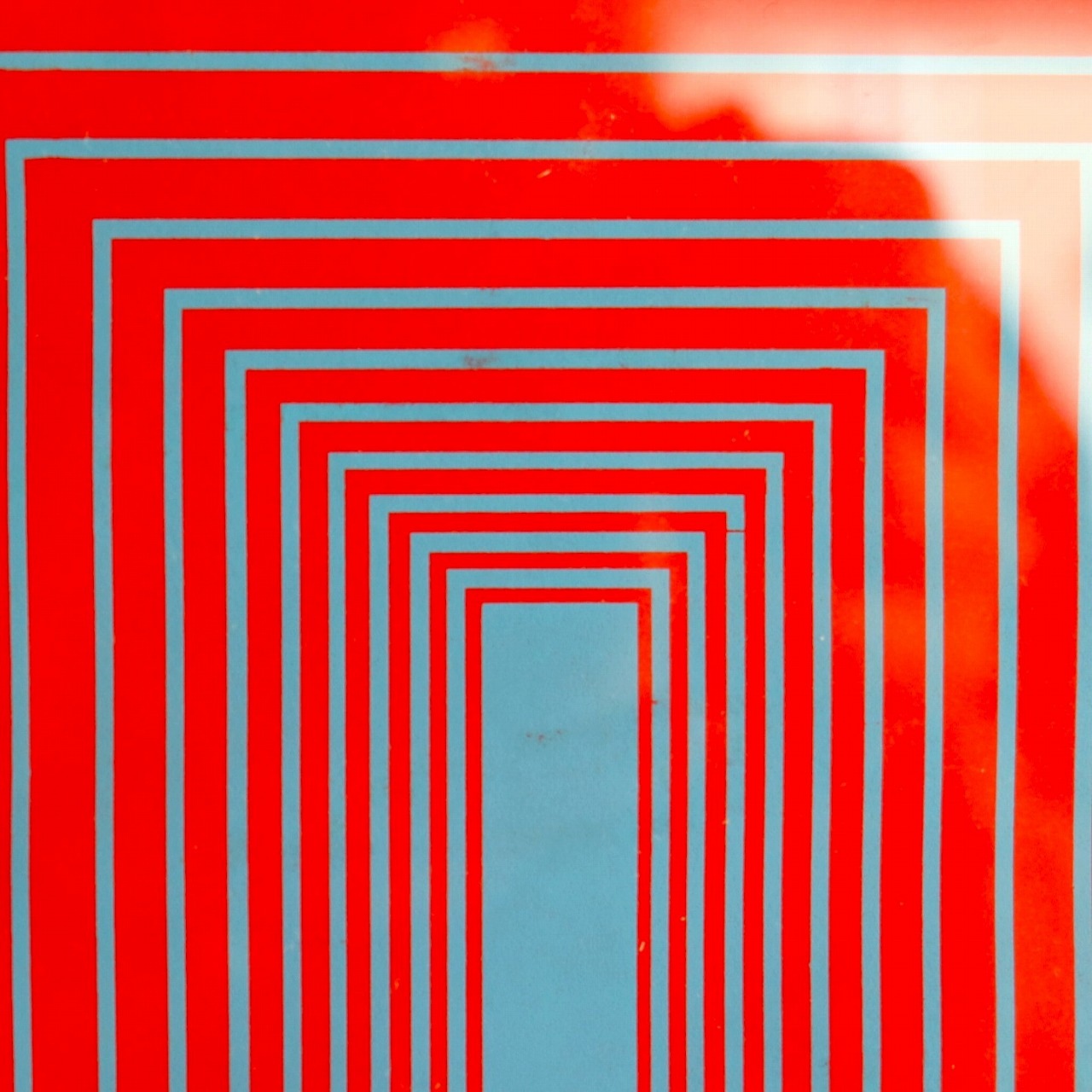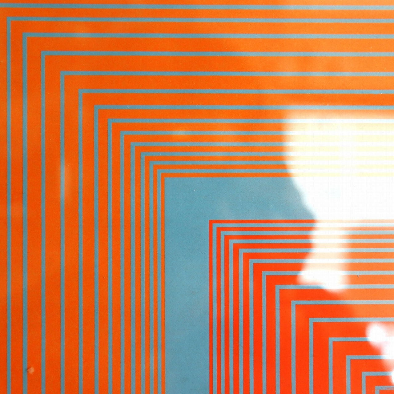 水色、オレンジ、赤の幾何学模様に黒のレターグラフィックが加わり、本来のアートとはひと味違う作品になっています。