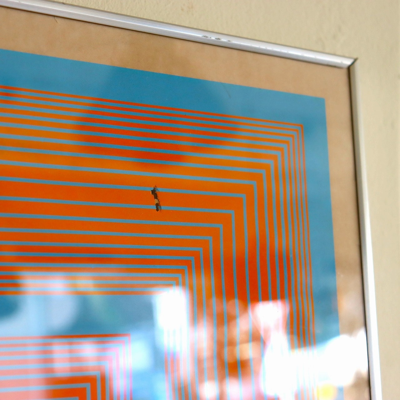 ポスターに一部汚れがあります。フレームにも細かいキズはありますが、目立つダメージはありません。