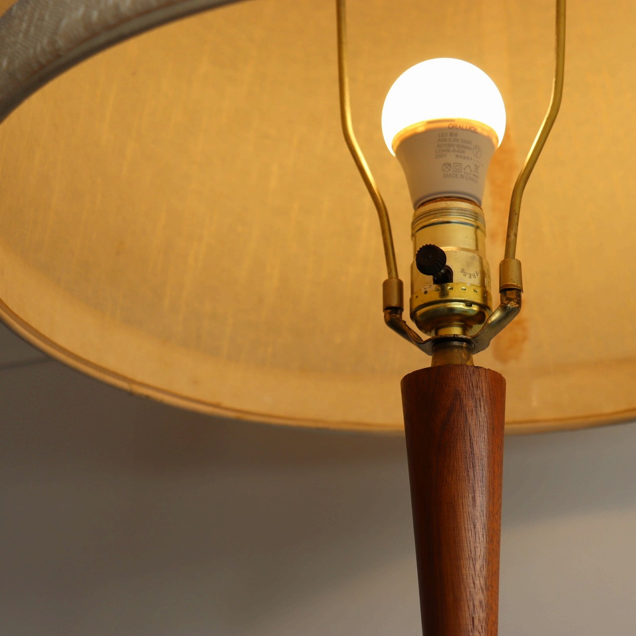 配線はメンテナンス済み。電球はE26の白熱球やLEDがご使用いただけますが、熱を持ちにくいLEDがおすすめです。
