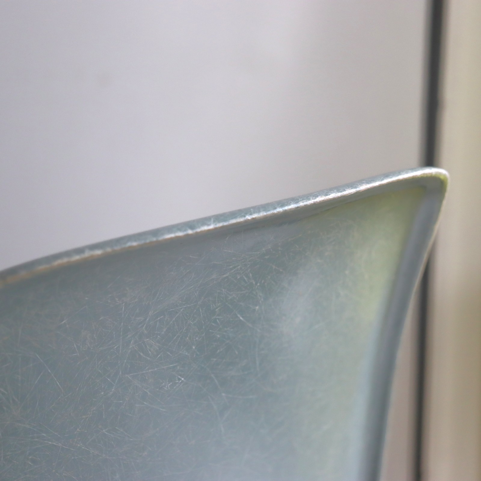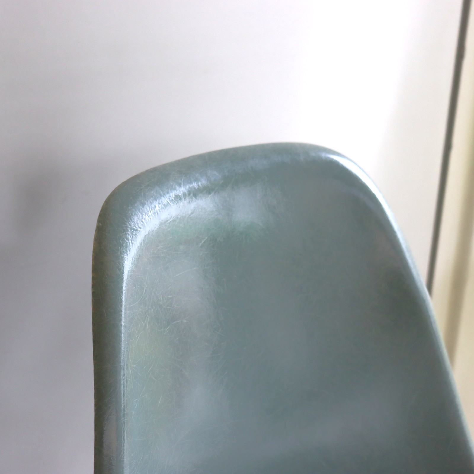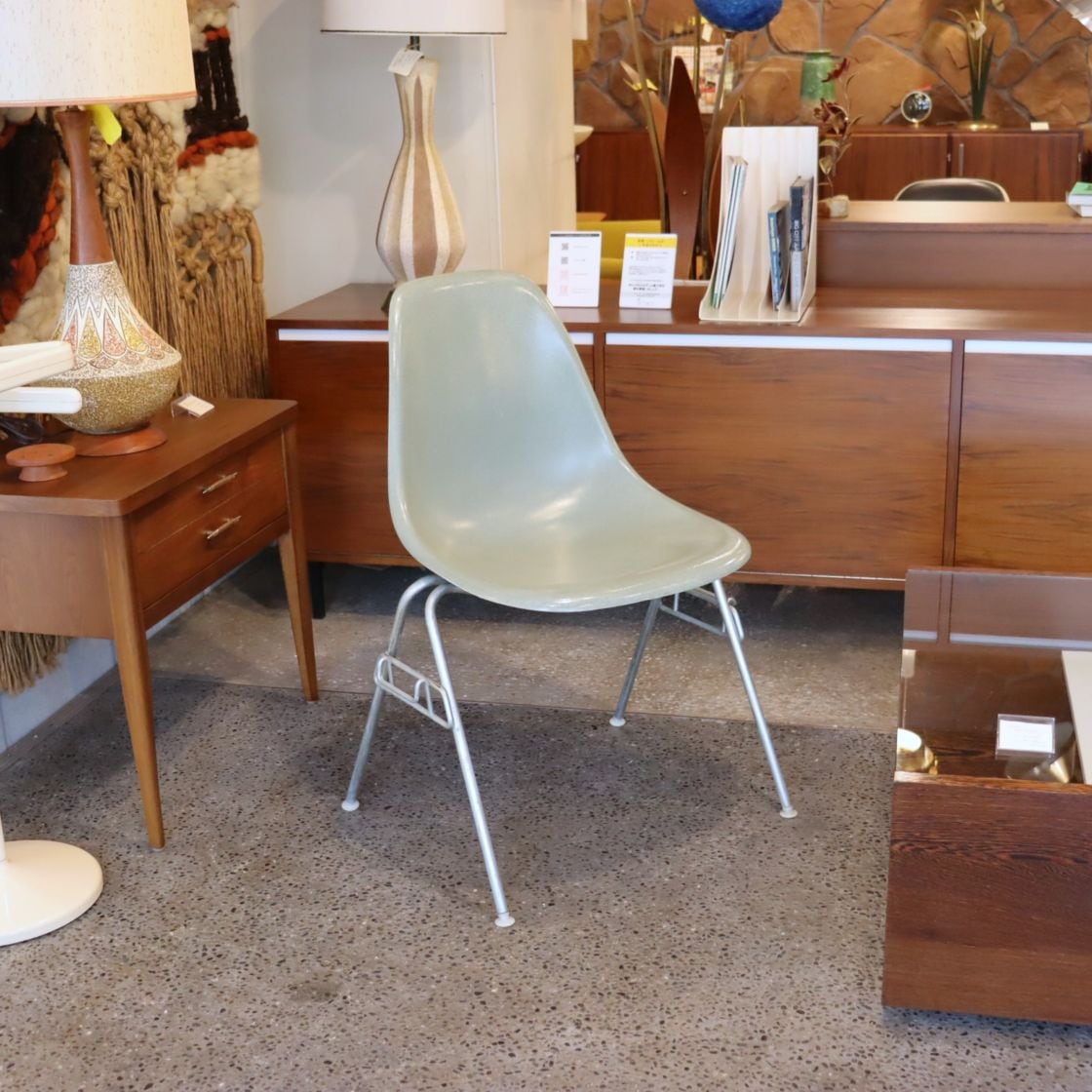 ハーマンミラー社製イームズ サイドシェルチェア。チャールズ・イームズデザインのビンテージチェア。FRP(ファイバーグラス)製のシーフォームグリーン、ワイドマウントです。