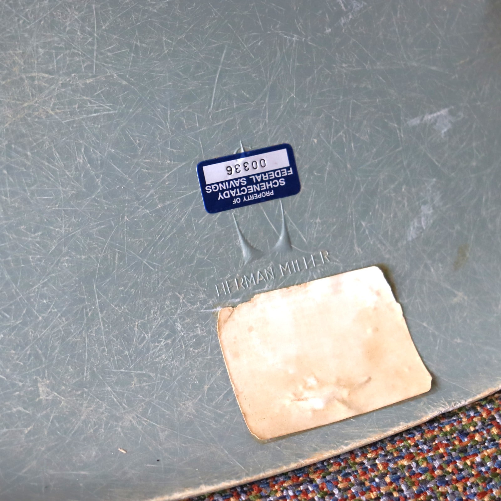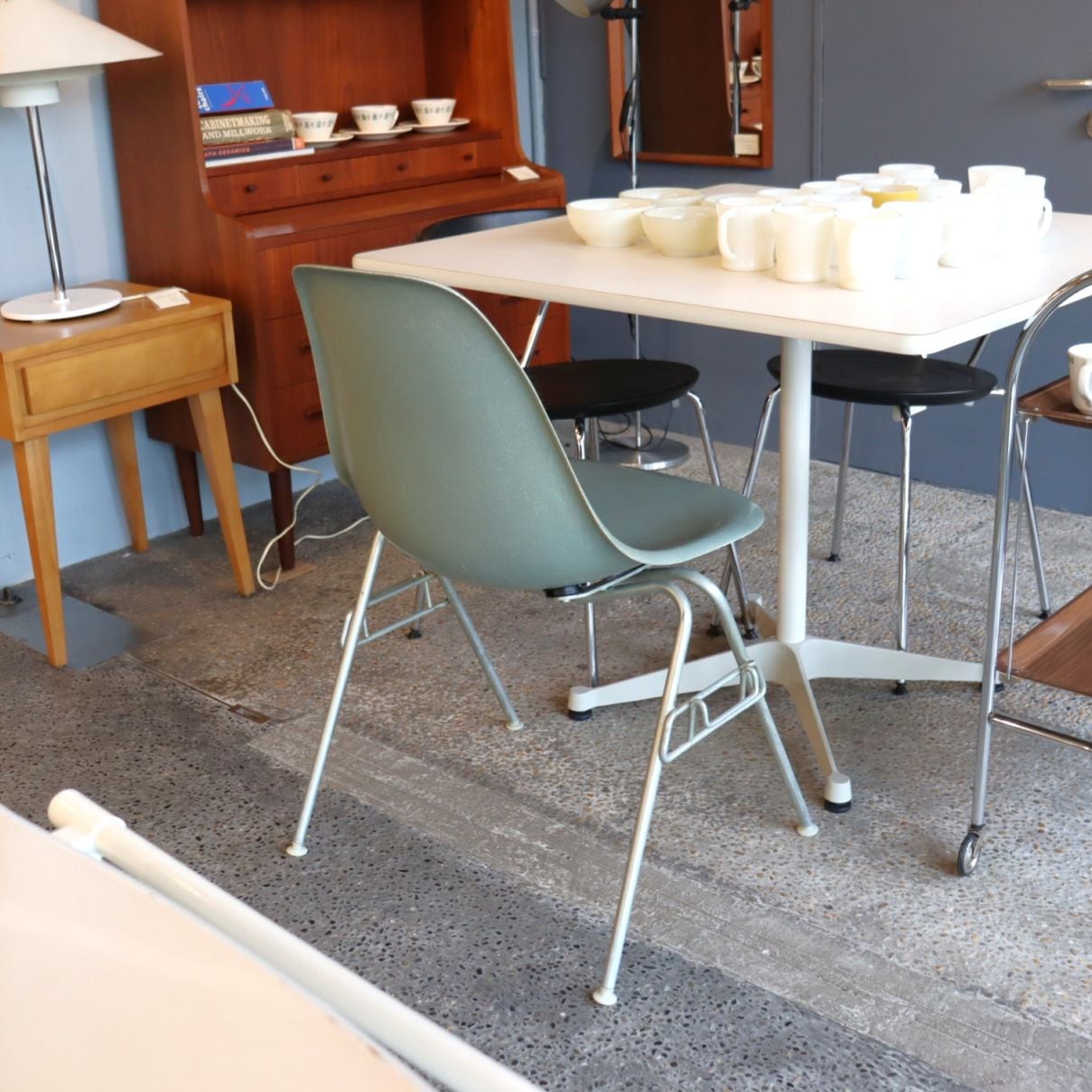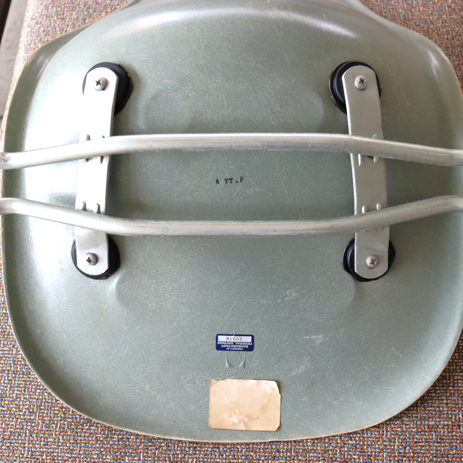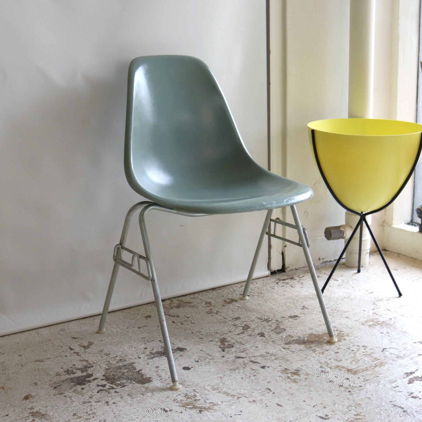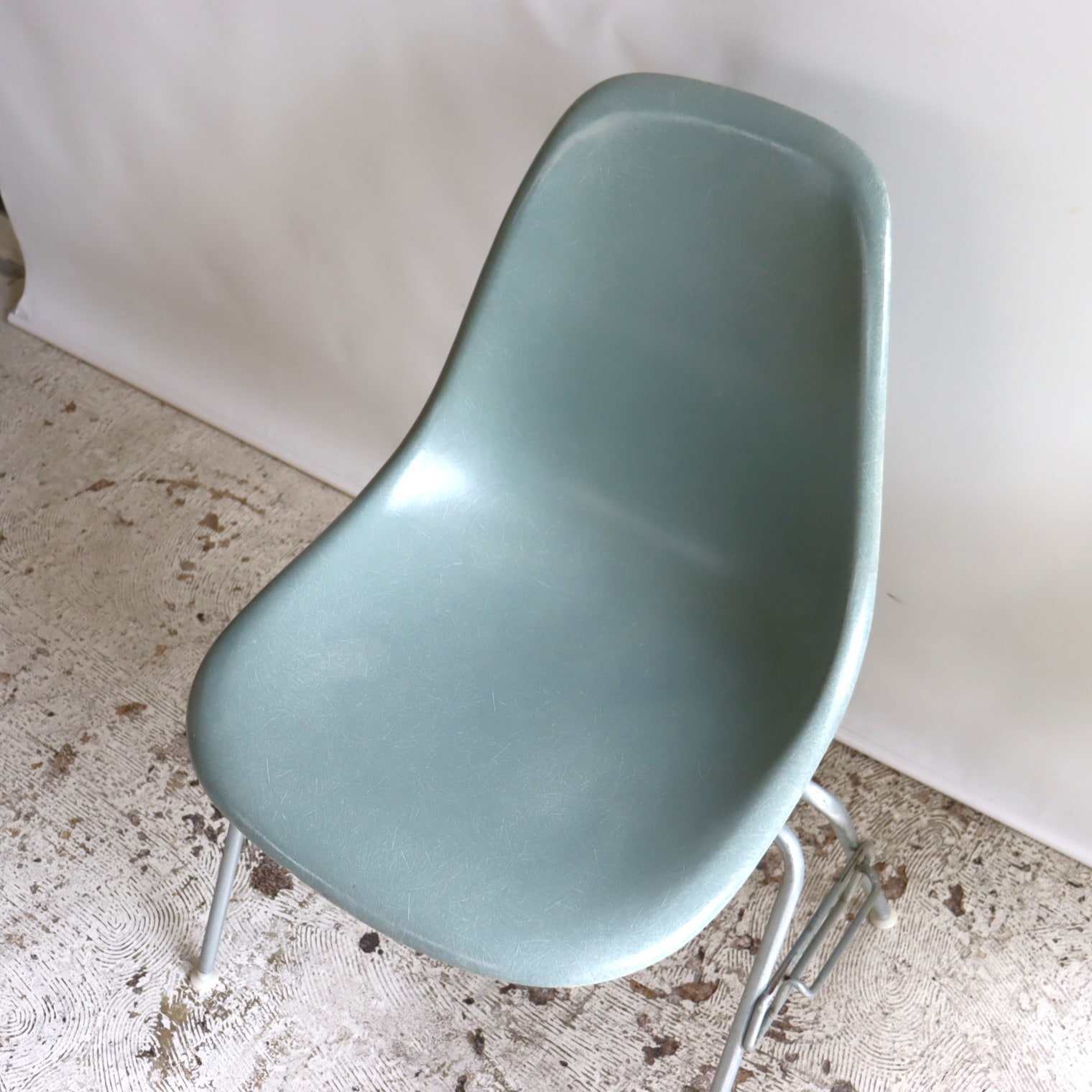 ハーマンミラー社製イームズ サイドシェルチェア(シーフォームグリーンFRP)+スタッキングベース付き