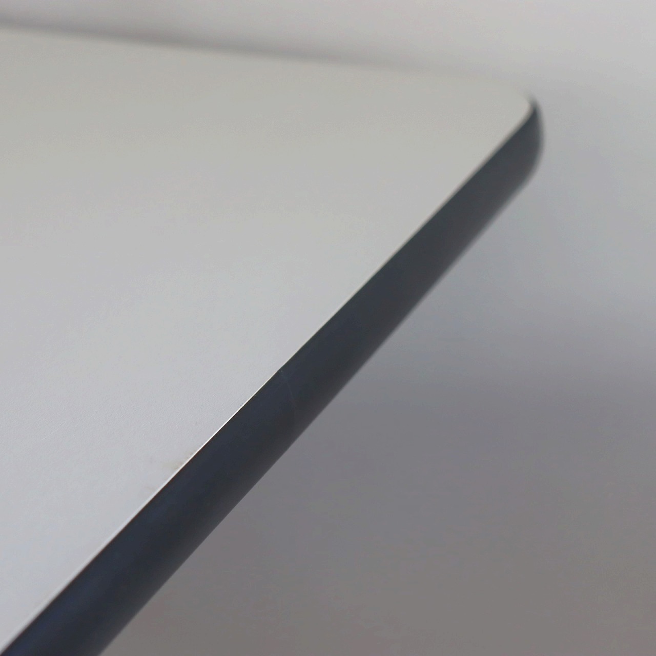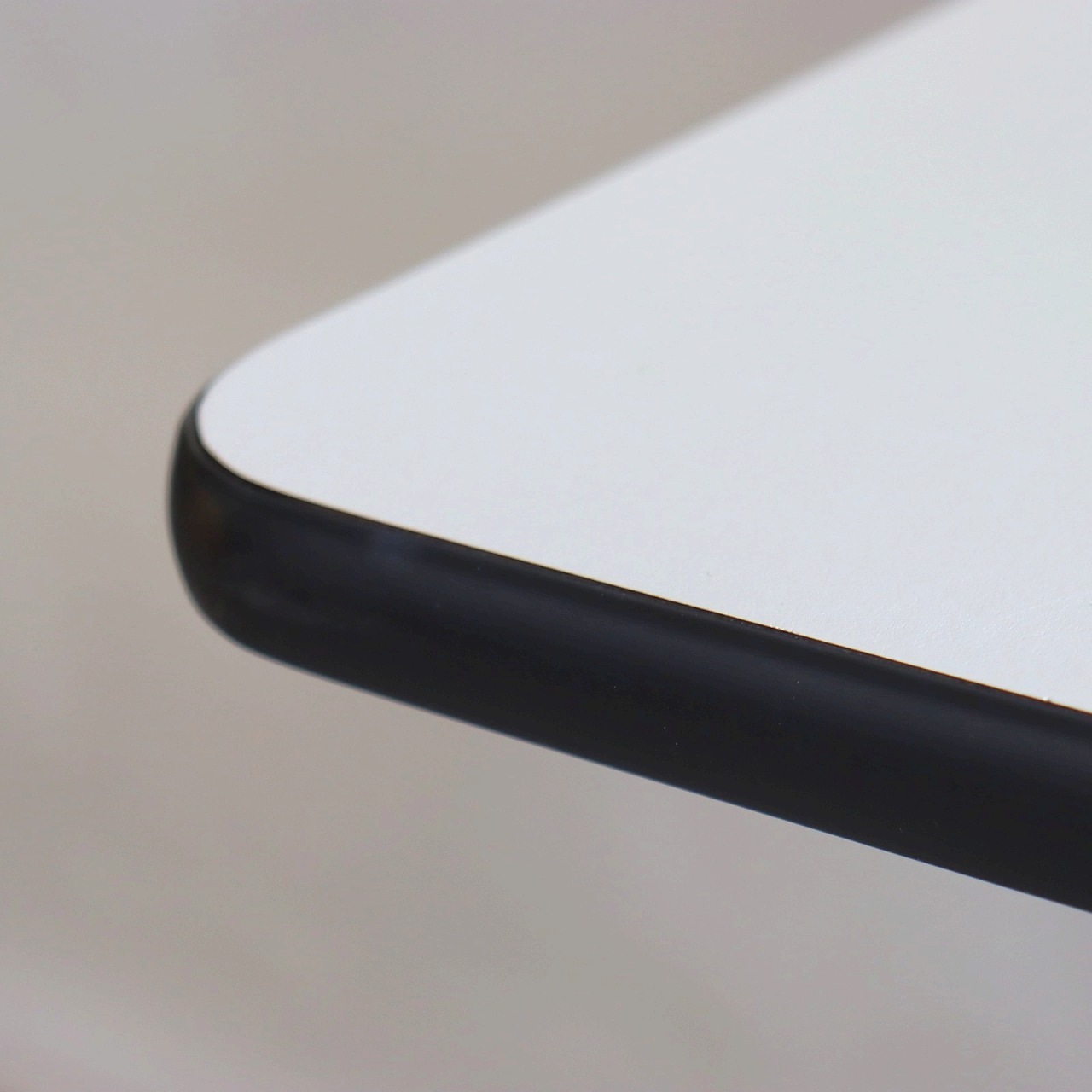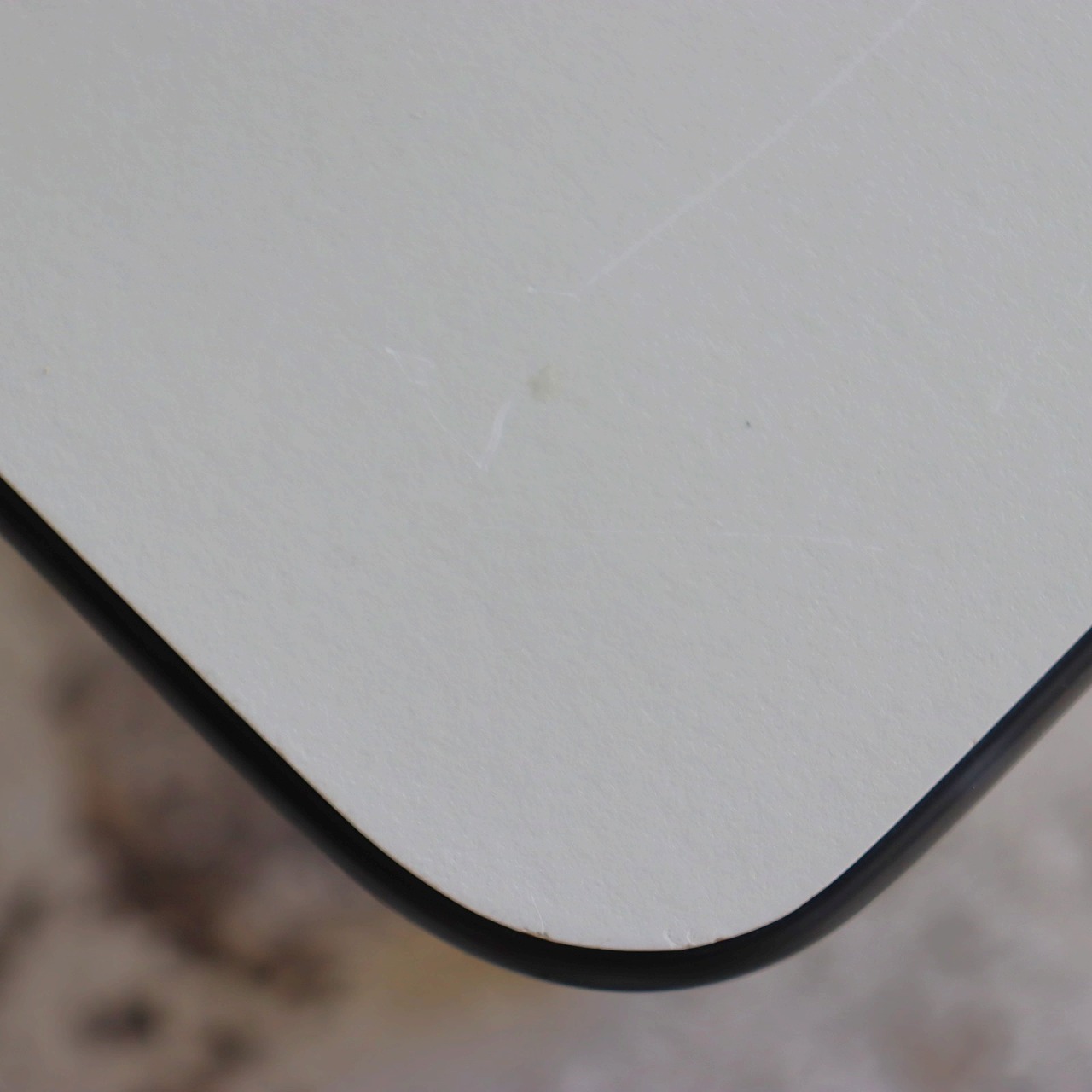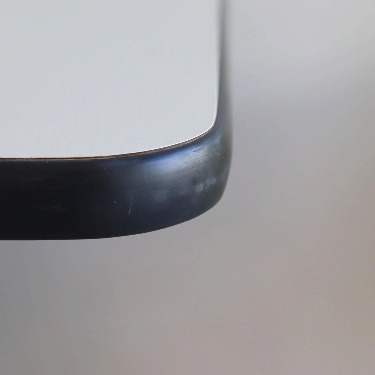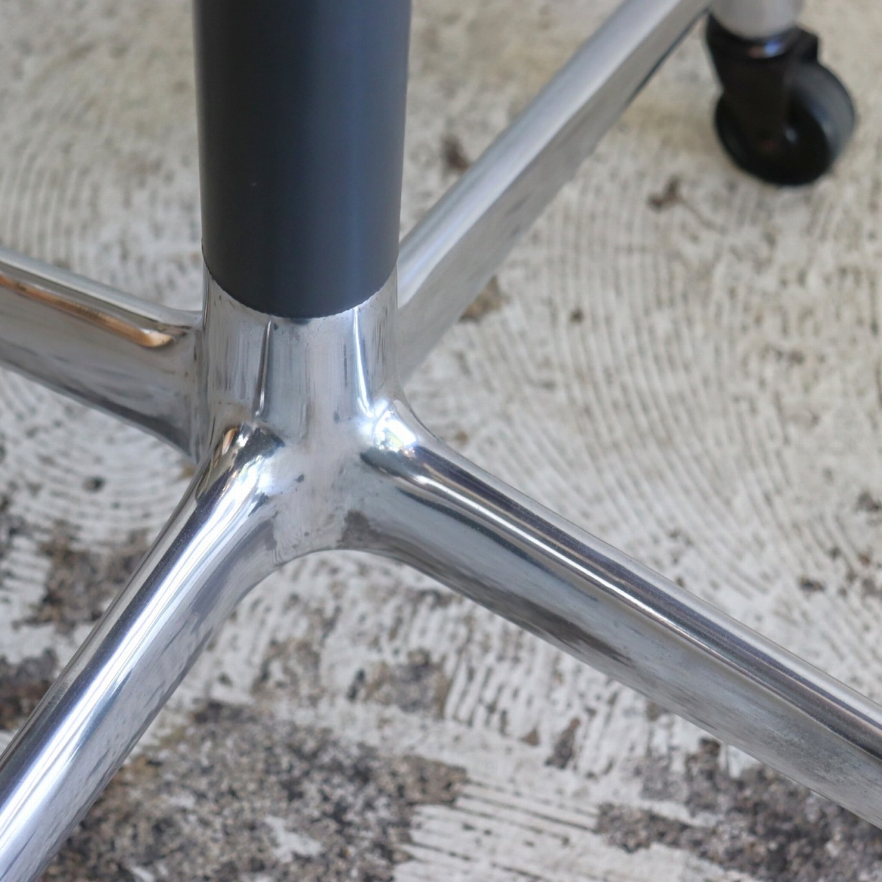 アルミナムベースのつるりとした質感、メラミンのベージュに近いオフホワイトとパイピングやベースのコントラストがクール。シンプルで無駄のない作りは現代でも古臭さを感じない佇まいです。
