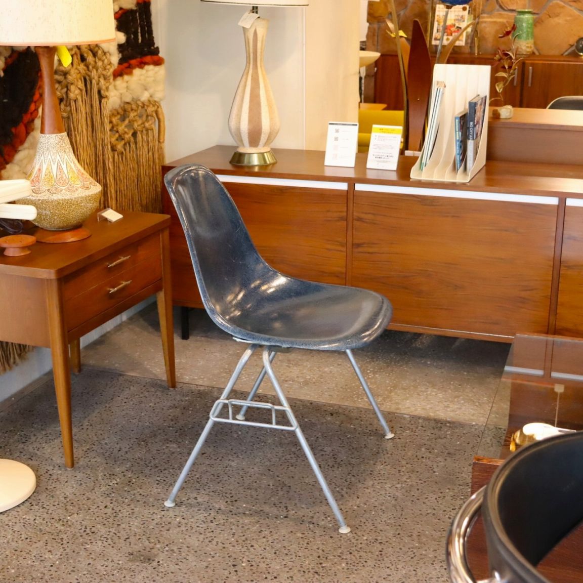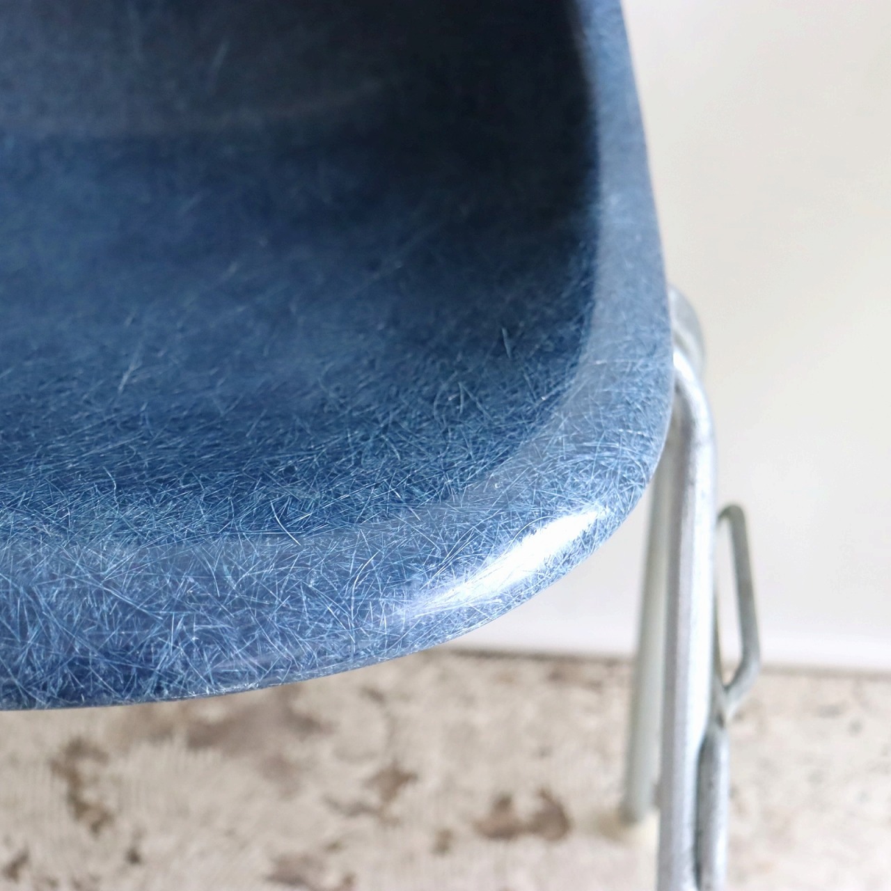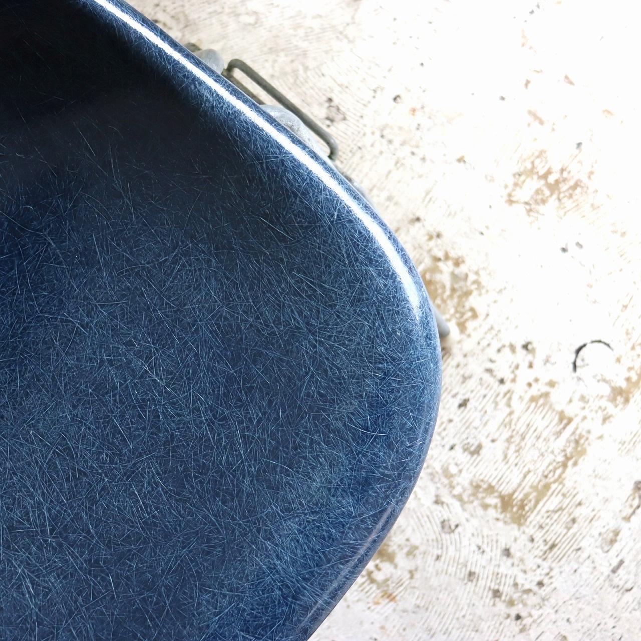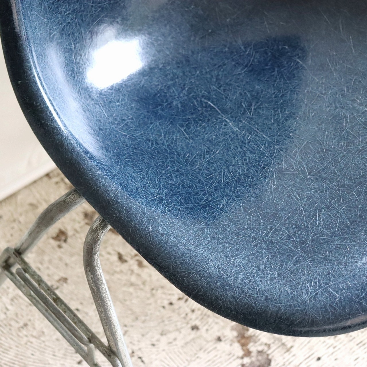 ハーマンミラー社製イームズ サイドシェルチェア。チャールズ・イームズデザインのビンテージチェア。FRP(ファイバーグラス)製のネイビー、ワイドマウントです。