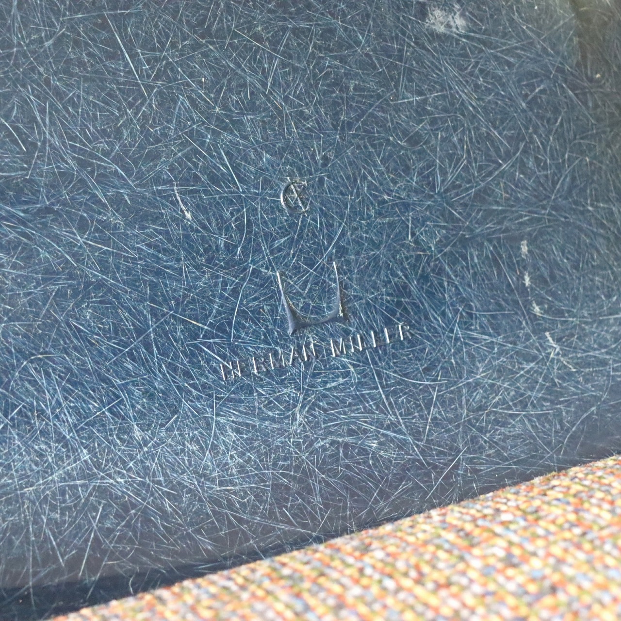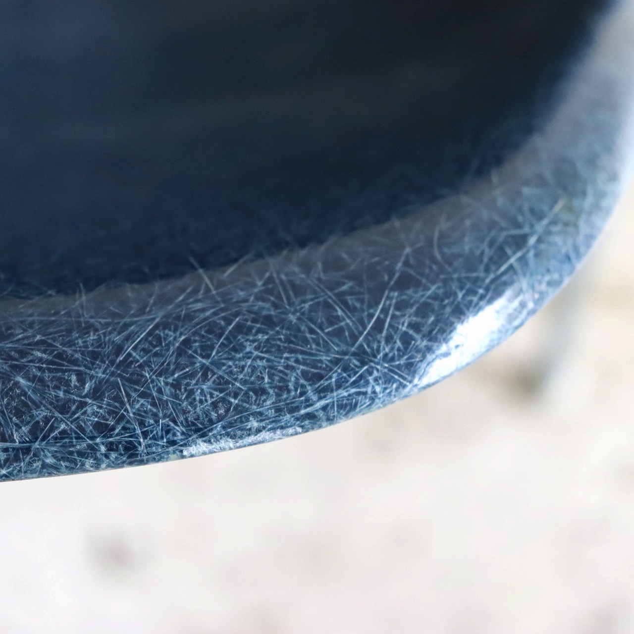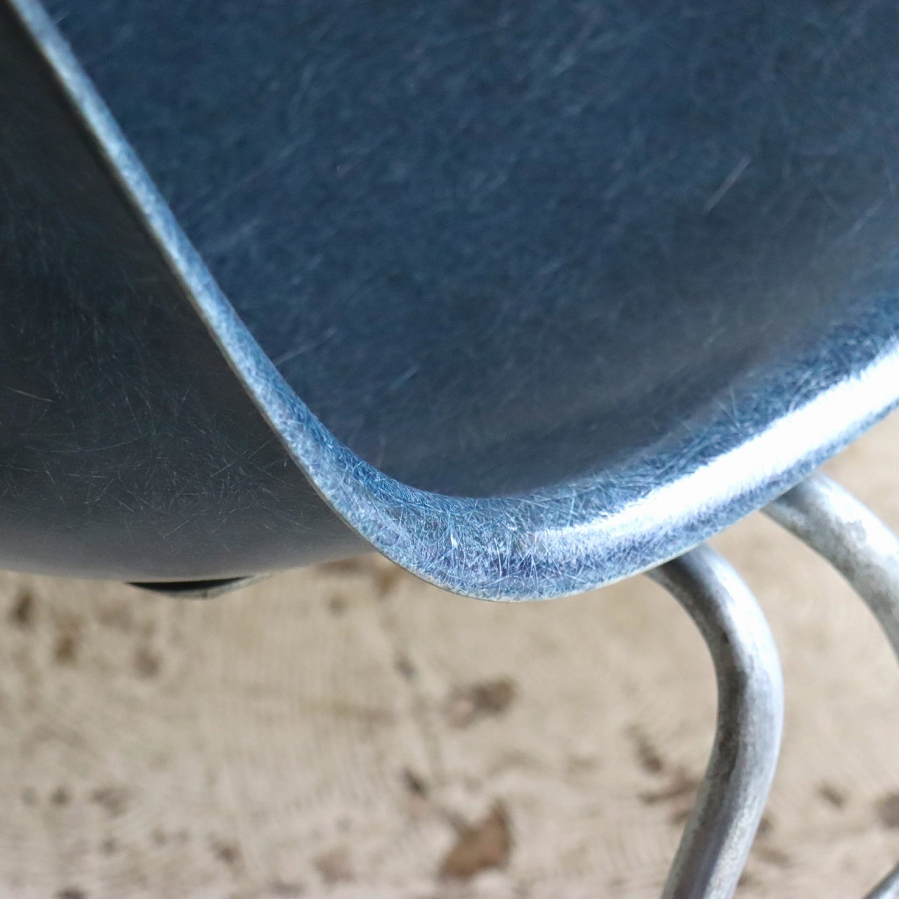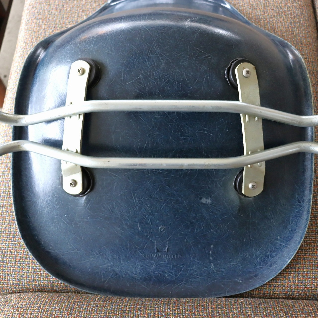 ハーマンミラー社製イームズ サイドシェルチェア。チャールズ・イームズデザインのビンテージチェア。FRP(ファイバーグラス)製のネイビー、ワイドマウントです。