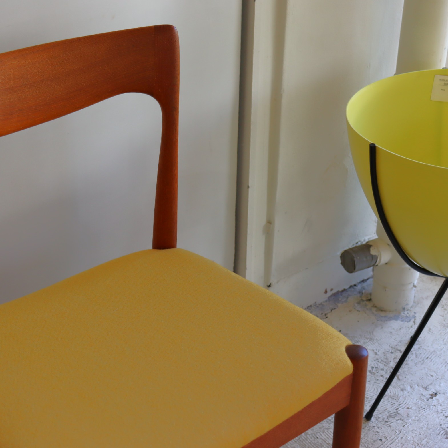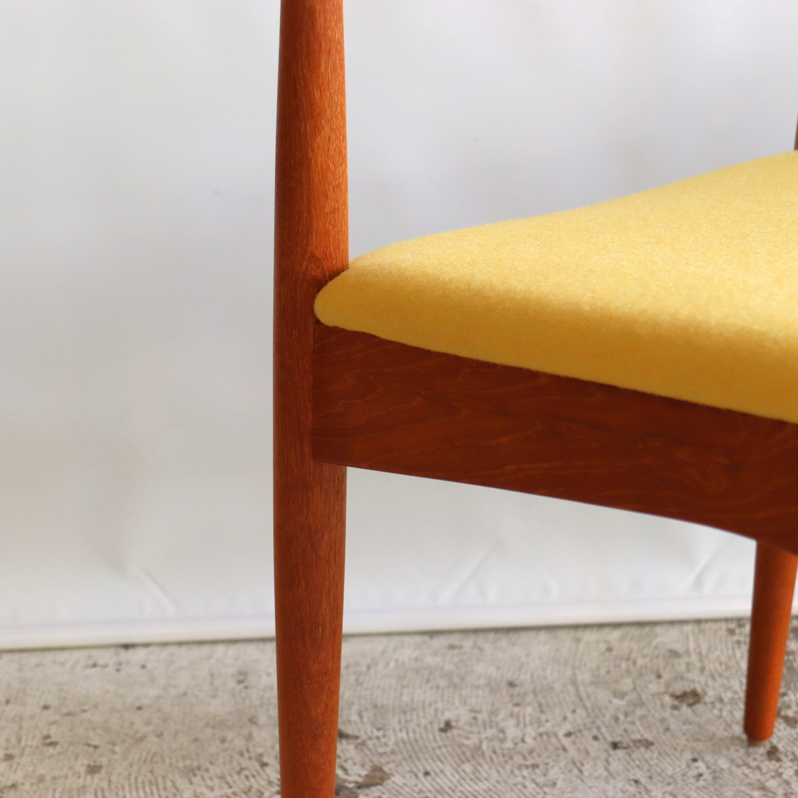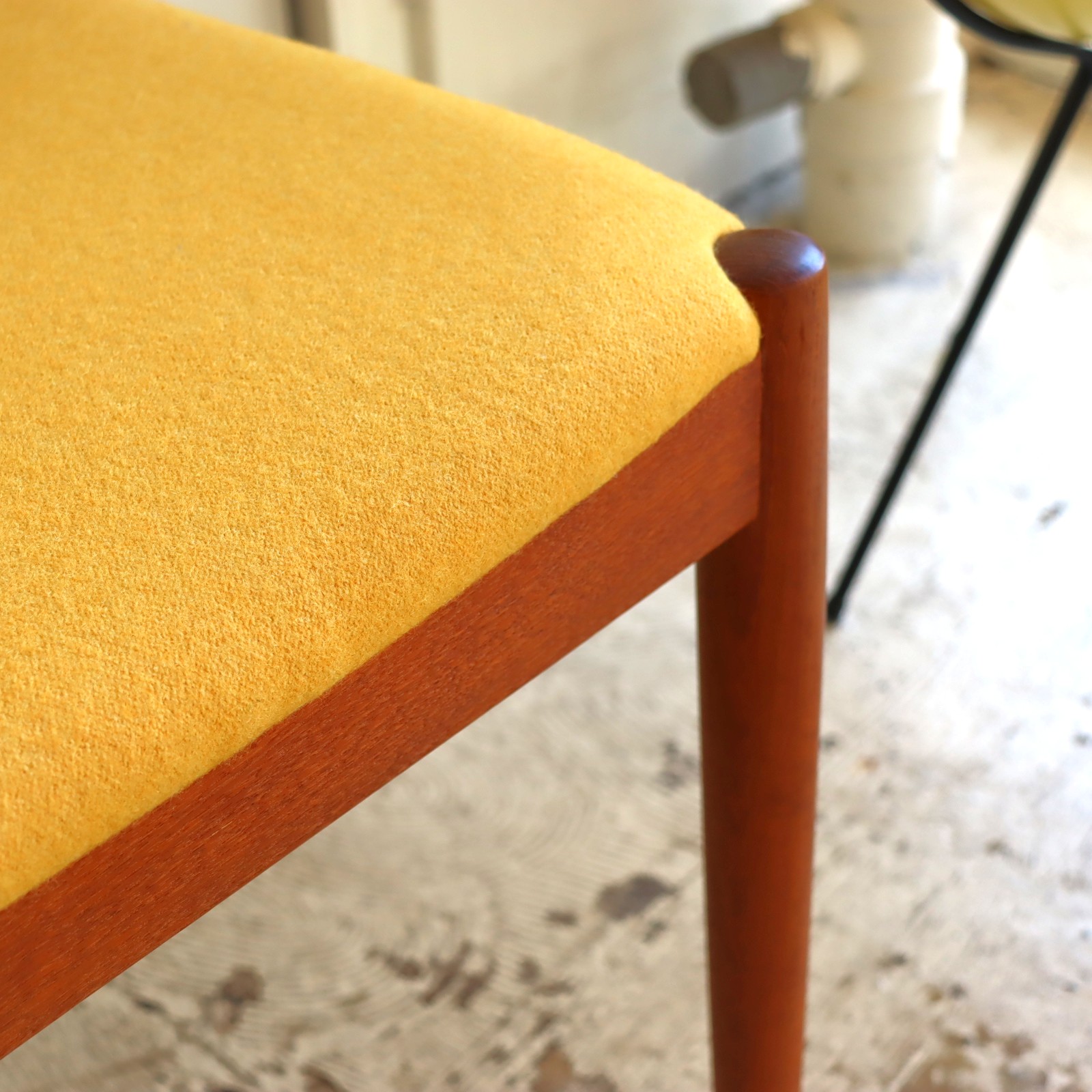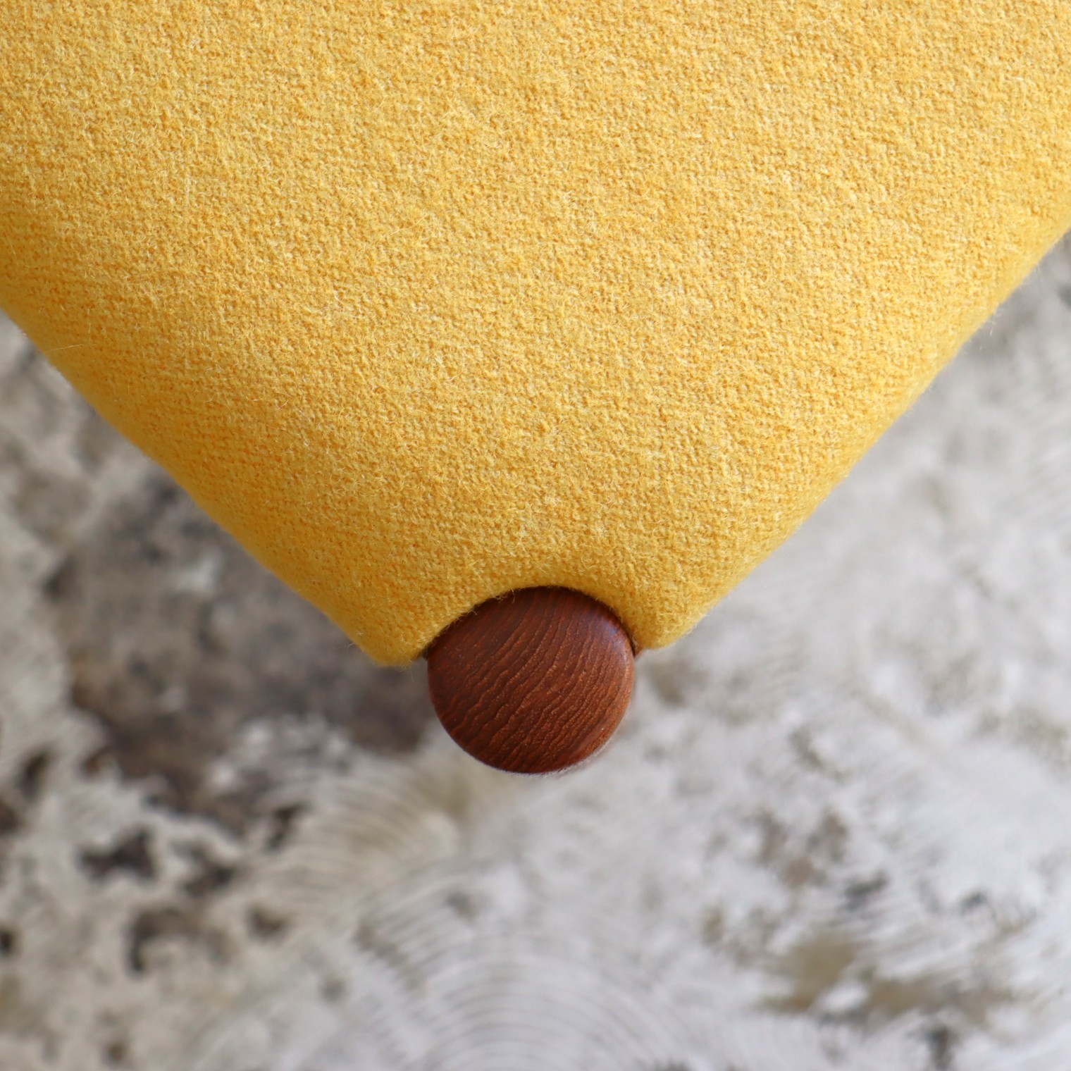 生地は新しく張り替えていて、北欧らしい落ち着いたイエローのファブリック。柔らかさや質感が感じられるヴィンテージらしい味わいのある生地です。