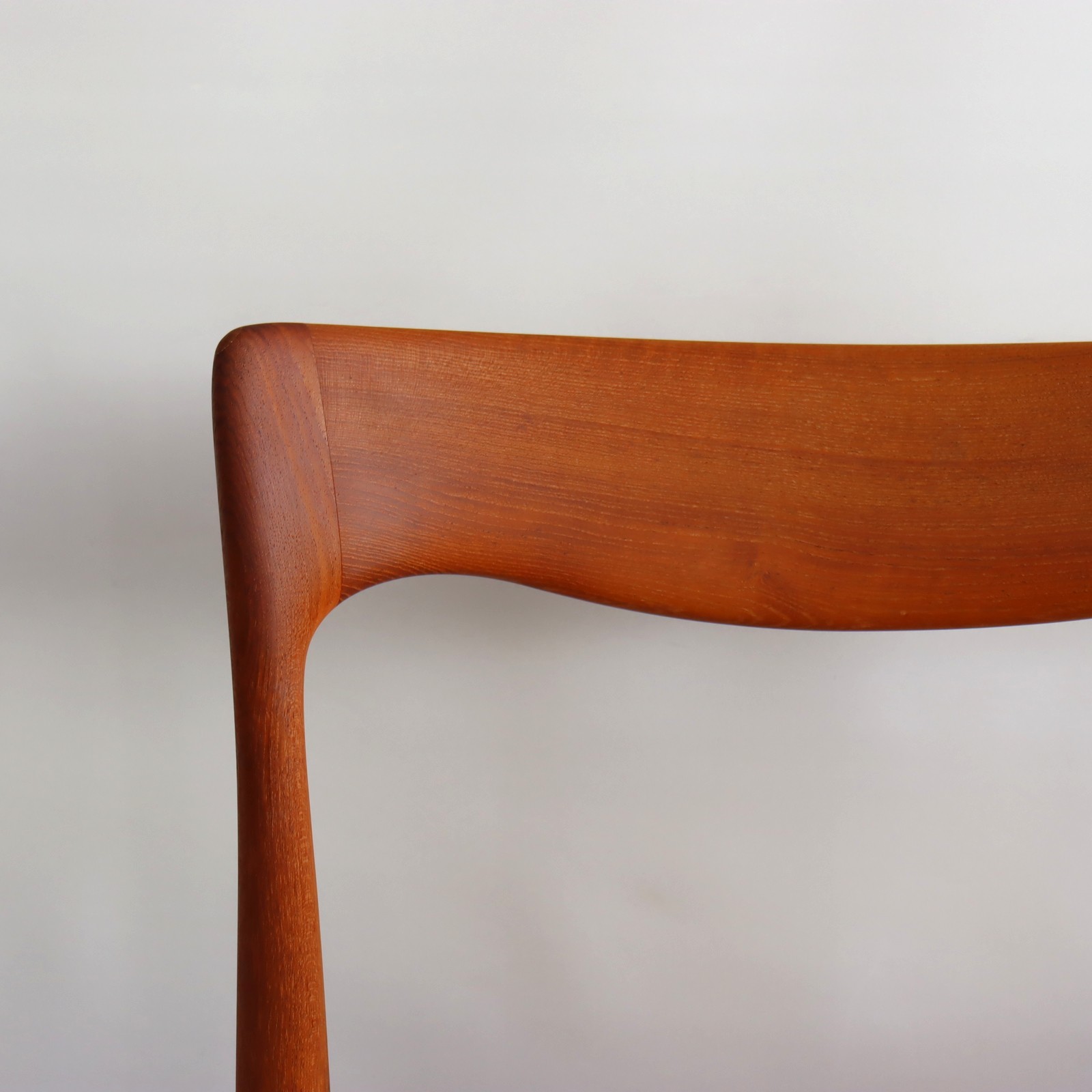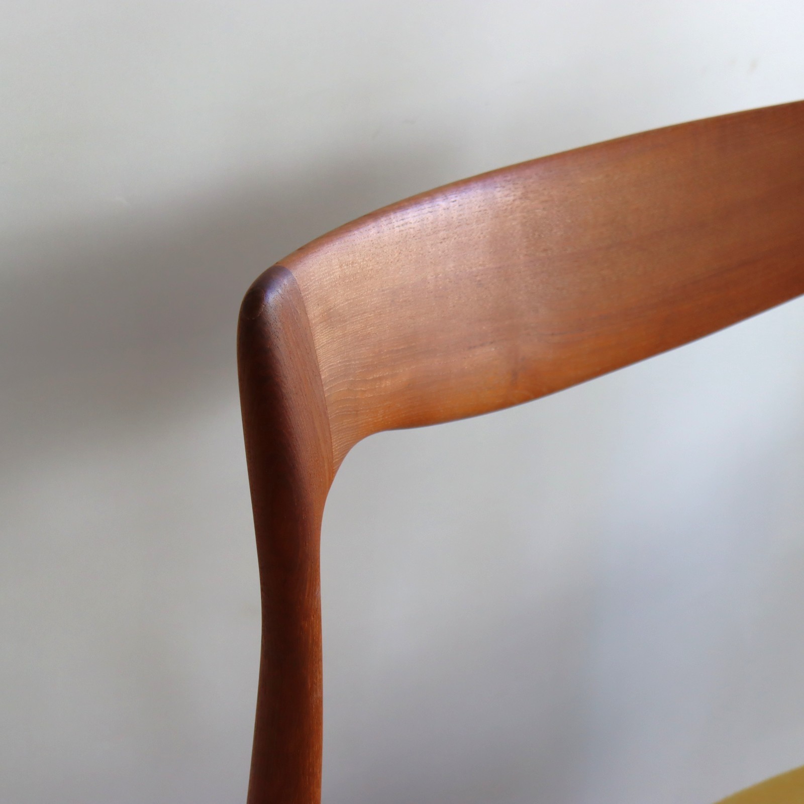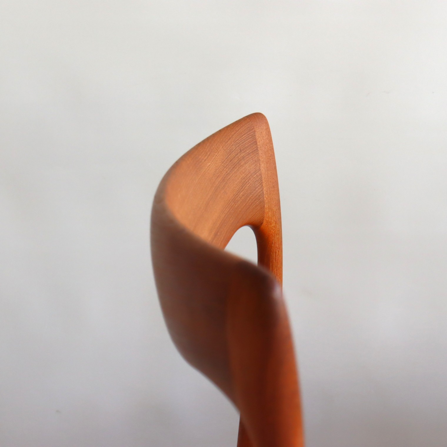材質はチークの無垢材を使用しています。背もたれと後ろ脚へのつなぎのなめらかさや、美しい木目がしっかりと感じられ、北欧のナチュラルで優しい雰囲気を感じさせてくれます。