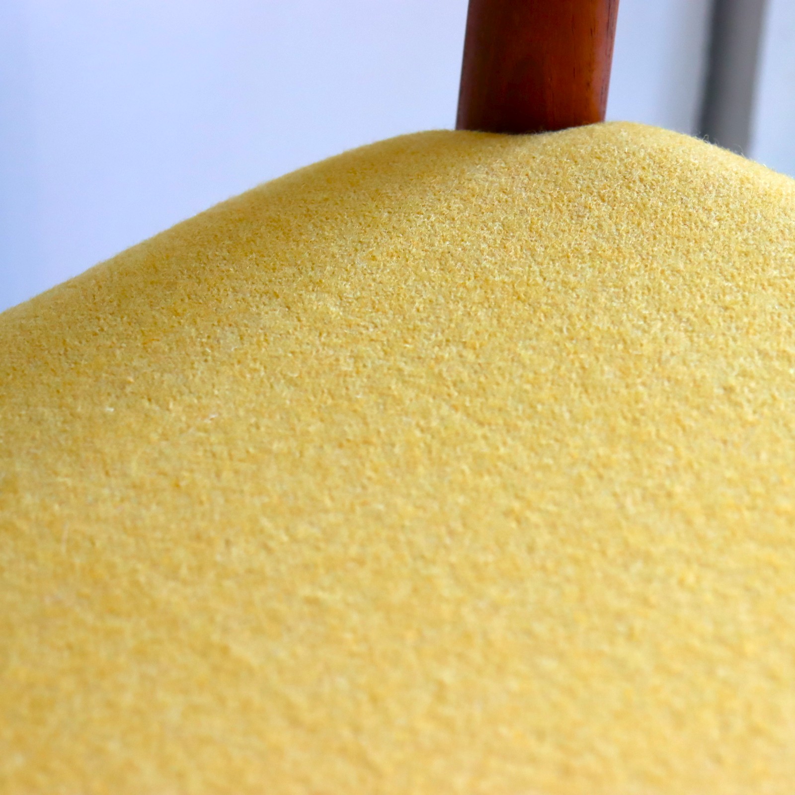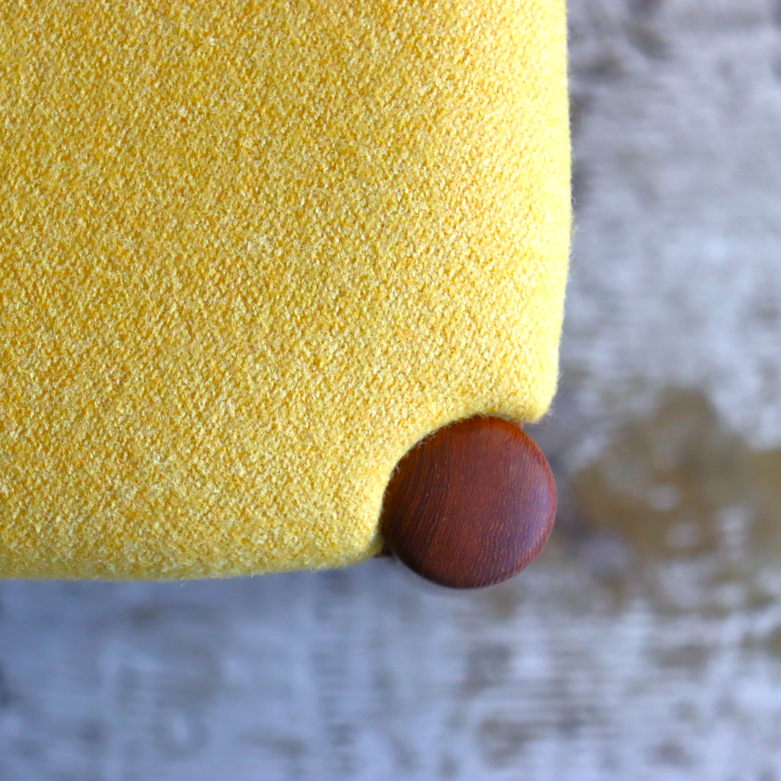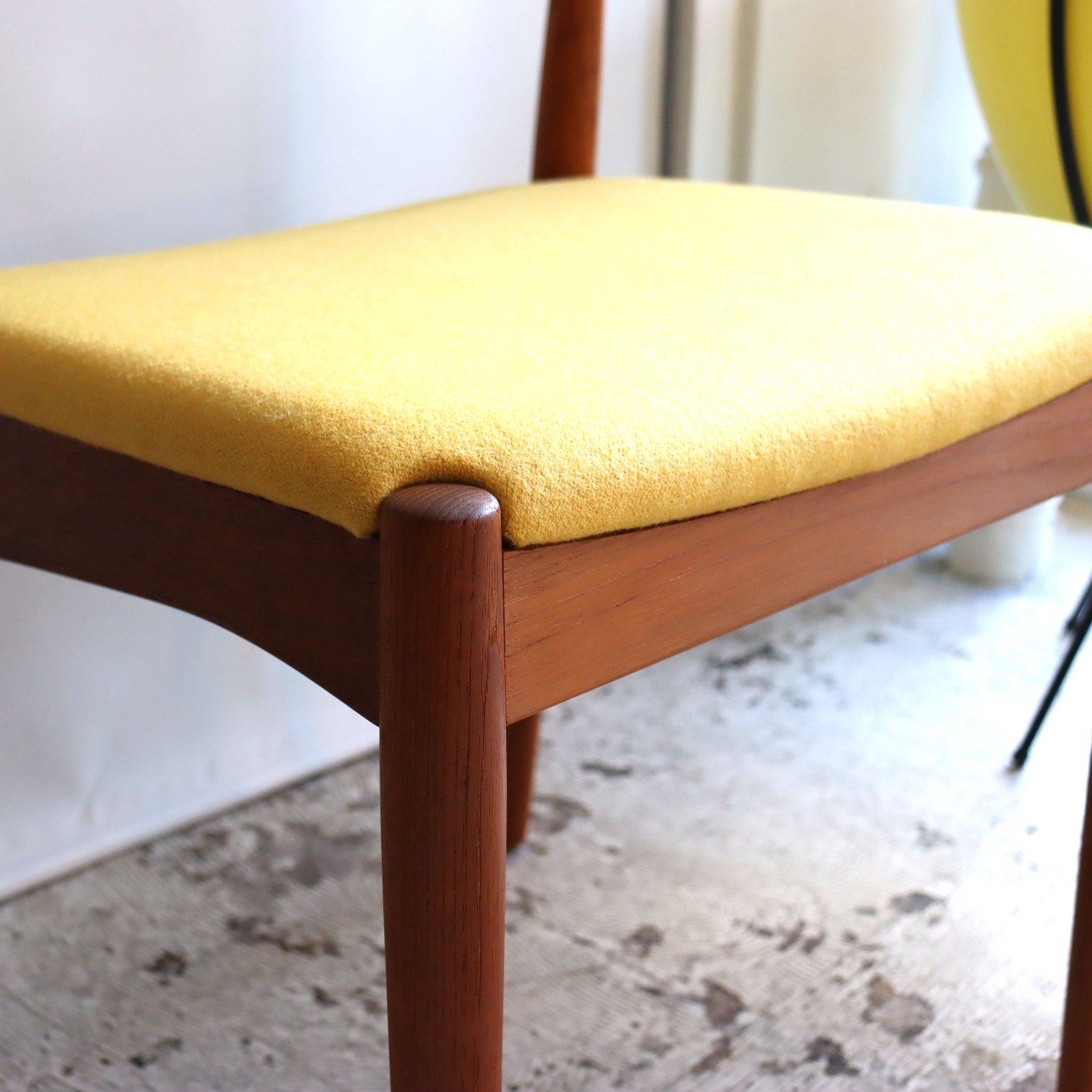 生地は新しく張り替えていて、北欧らしい落ち着いたイエローのファブリック。柔らかさや質感が感じられるヴィンテージらしい味わいのある生地です。