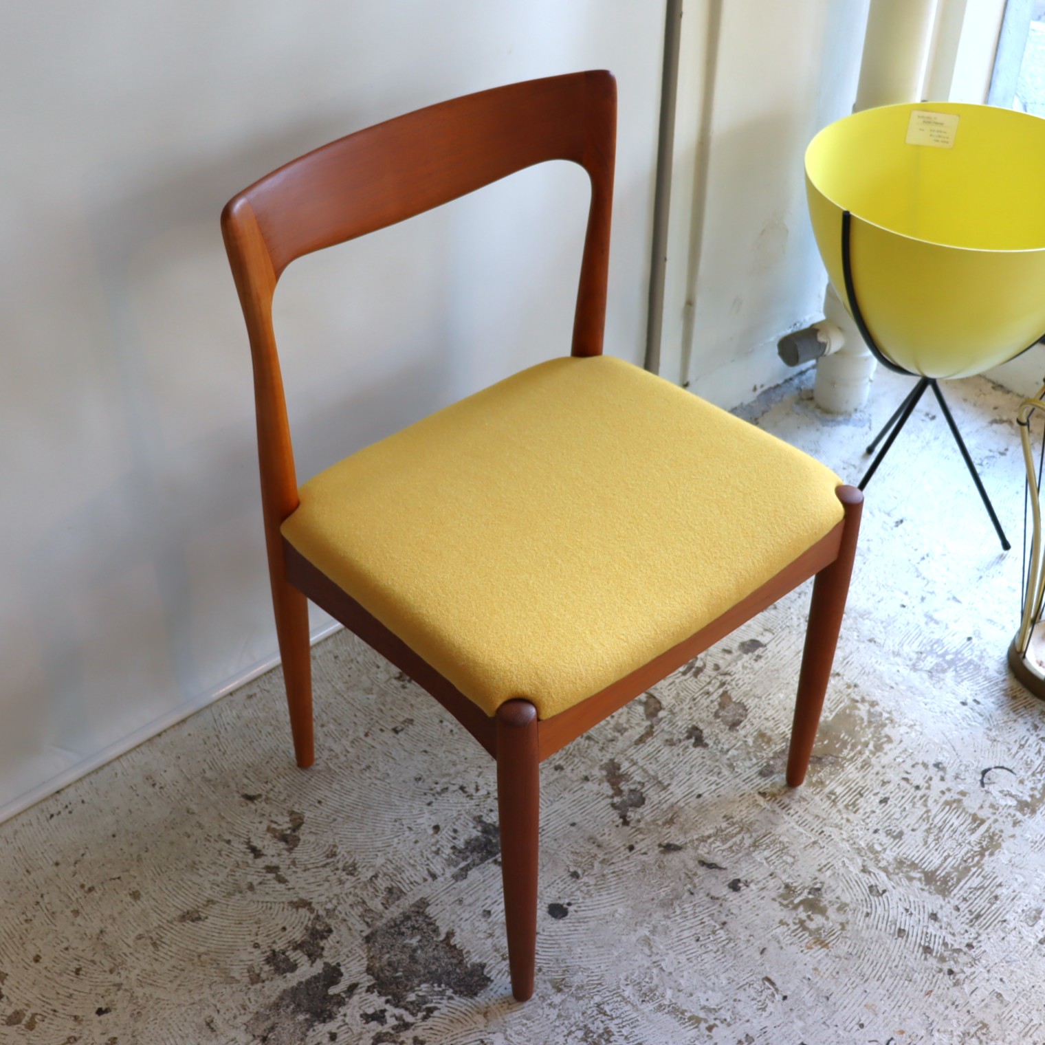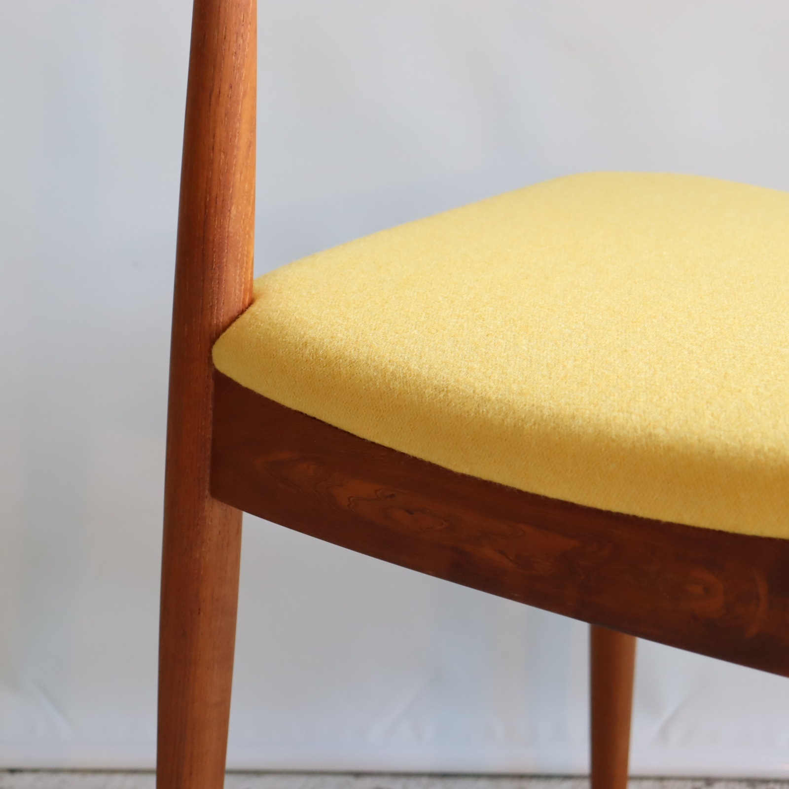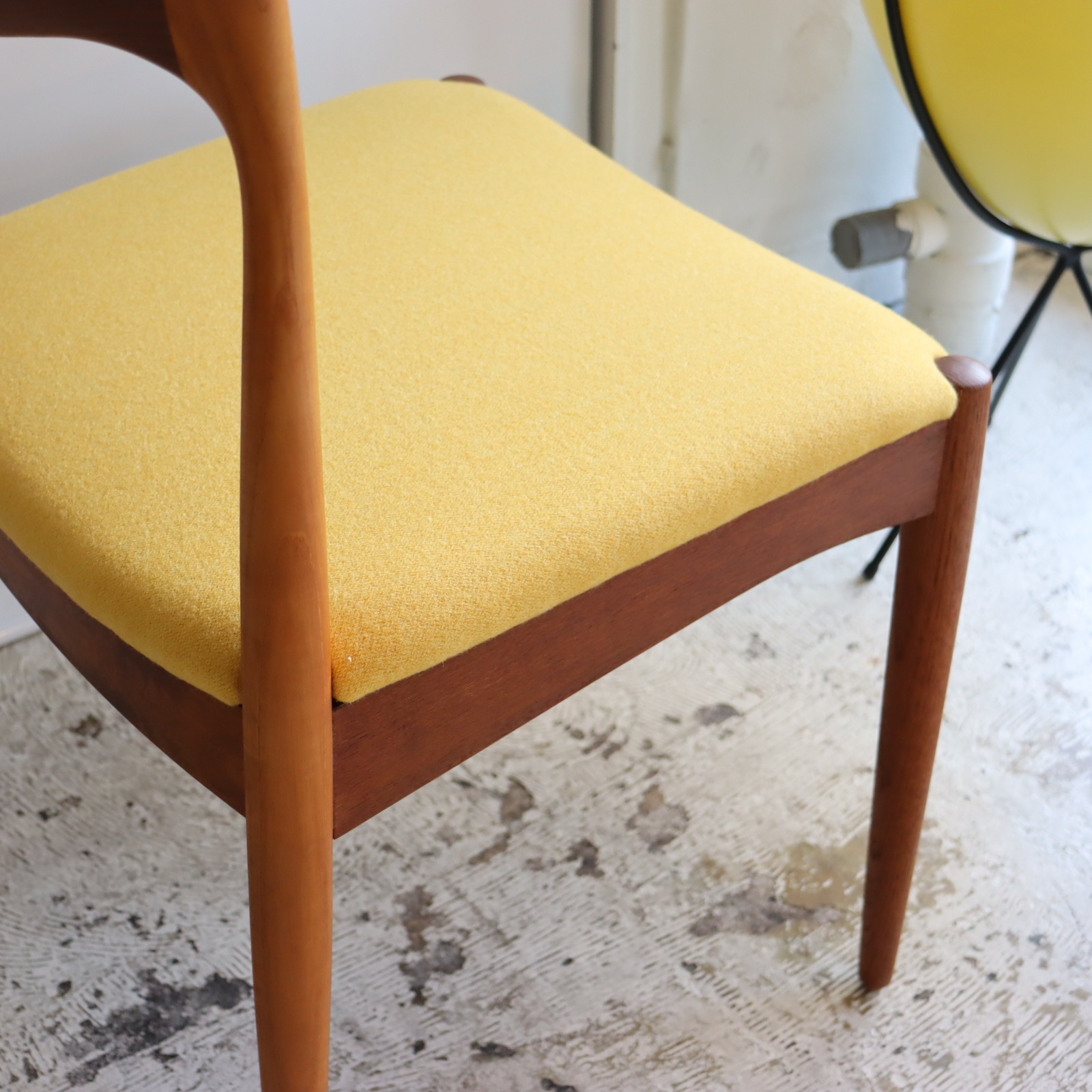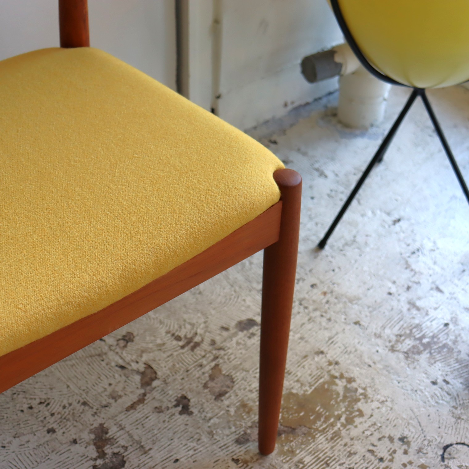 生地は新しく張り替えていて、北欧らしい落ち着いたイエローのファブリック。柔らかさや質感が感じられるヴィンテージらしい味わいのある生地です。