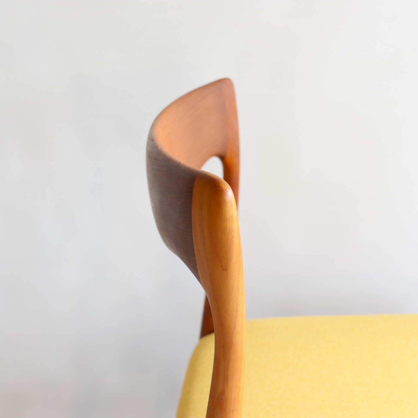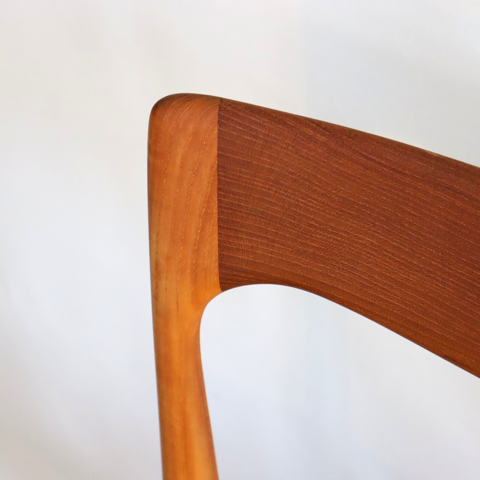 材質はチークの無垢材を使用しています。背もたれと後ろ脚へのつなぎのなめらかさや、美しい木目がしっかりと感じられ、北欧のナチュラルで優しい雰囲気を感じさせてくれます。